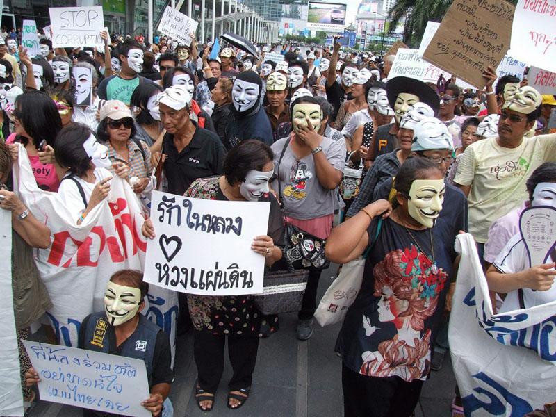 อุปกรณ์ชิ้นเก๋อันนี้มาจากกลุ่ม V for thailand ซึ่งหน้ากากวี คือสัญลักษณ์สากล ที่ทั่วโลกใช้สู้กับความไม่เป็นธรรมของรัฐบาล V = We หรือ “พวกเรา” การใส่หน้ากาก Guy Fawkes หมายถึง เราได้ละทิ้งตัวตน เพื่อมุ่งสู่เป้าหมายเดียวกันที่มาของหน้ากากขาวที่เห็นกันอยู่นั้นมาจาก ตัวละครในหนังเรื่อง V For Vendetta ที่ดัดแปลงมาจากนิยายของ อลัน มัวร์ โดยคำว่า Vendetta เป็นภาษาอิตาเลียนที่มีความหมายว่าการล้างแค้น ซึ่งภายในหนังนั้นมีเนื้อหาเกี่ยวกับการปลุกเร้าให้ผู้คนเกิดความหวังเชื่อมั่นในความถูกต้องและความยุติธรรม และคนกลุ่มนี้ต้องการย้ำให้ทุกคนรู้ว่า "ประชาชนไม่ควรที่จะเกรงกลัวรัฐบาล รัฐบาลต่างหากที่ควรเกรงกลัวประชาชน"