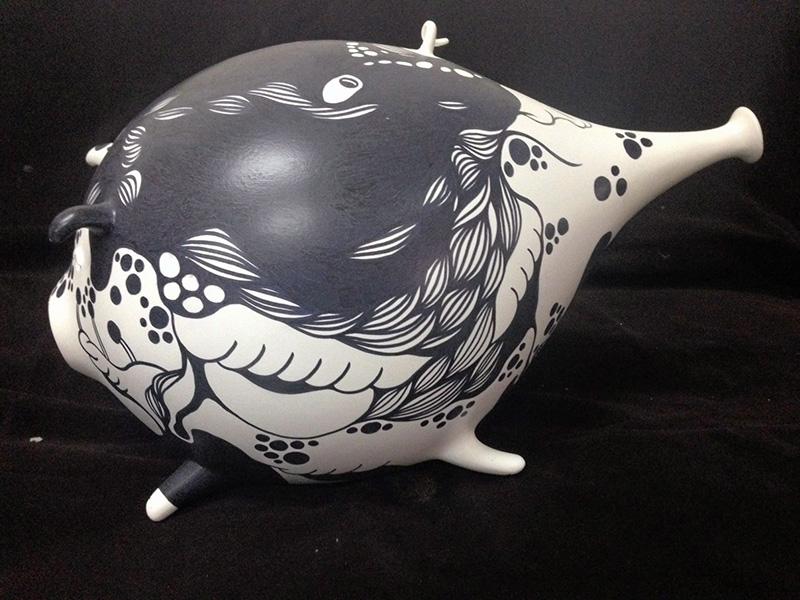 หมูลายเส้นของ “วศินบุรี สุพานิชวร-ภาชน์” ทายาทเจ้าของโรงงานเซรามิก “เถ้าฮงไถ่” ผู้ออกแบบกระปุกหมู เพื่อมูลนิธิรามาฯ.
