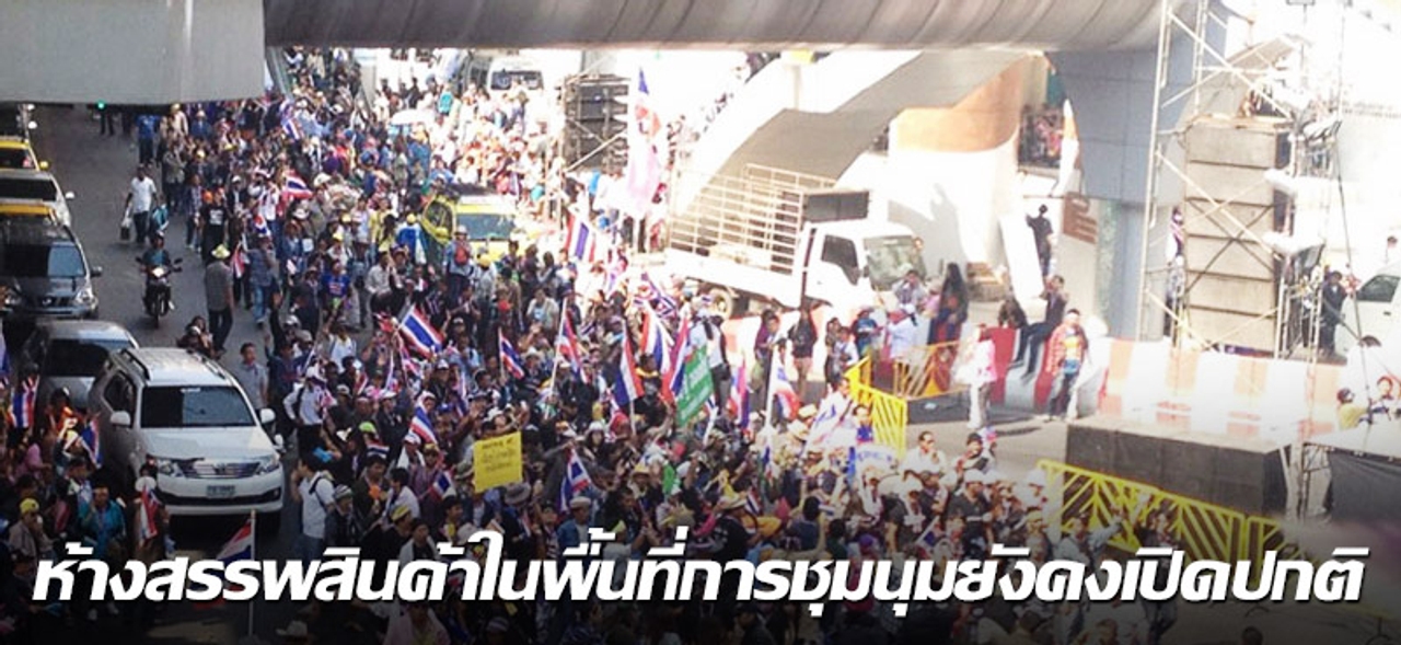 เมื่อเวลาประมาณ 12.30 น. วันที่ 22 ธ.ค. มีรายงานว่า ขณะนี้ แม้มีการชุมนุมในหลายๆ พื้นที่ ทั้งย่านแยกปทุมวัน แยกราชประสงค์ และอนุสาวรีย์ชัยสมรภูมิ เป็นต้น แต่พบว่า ห้างสรรพสินค้าต่างๆ อาทิ เซ็นทรัลเวิลด์ สยามพารากอน สยามสแควร์และสยามเซ็นเตอร์ยังเปิดบริการตามปกติ ซึ่งบางแห่งได้เพิ่มเจ้าหน้าที่รักษาความปลอดภัยมากขึ้น
