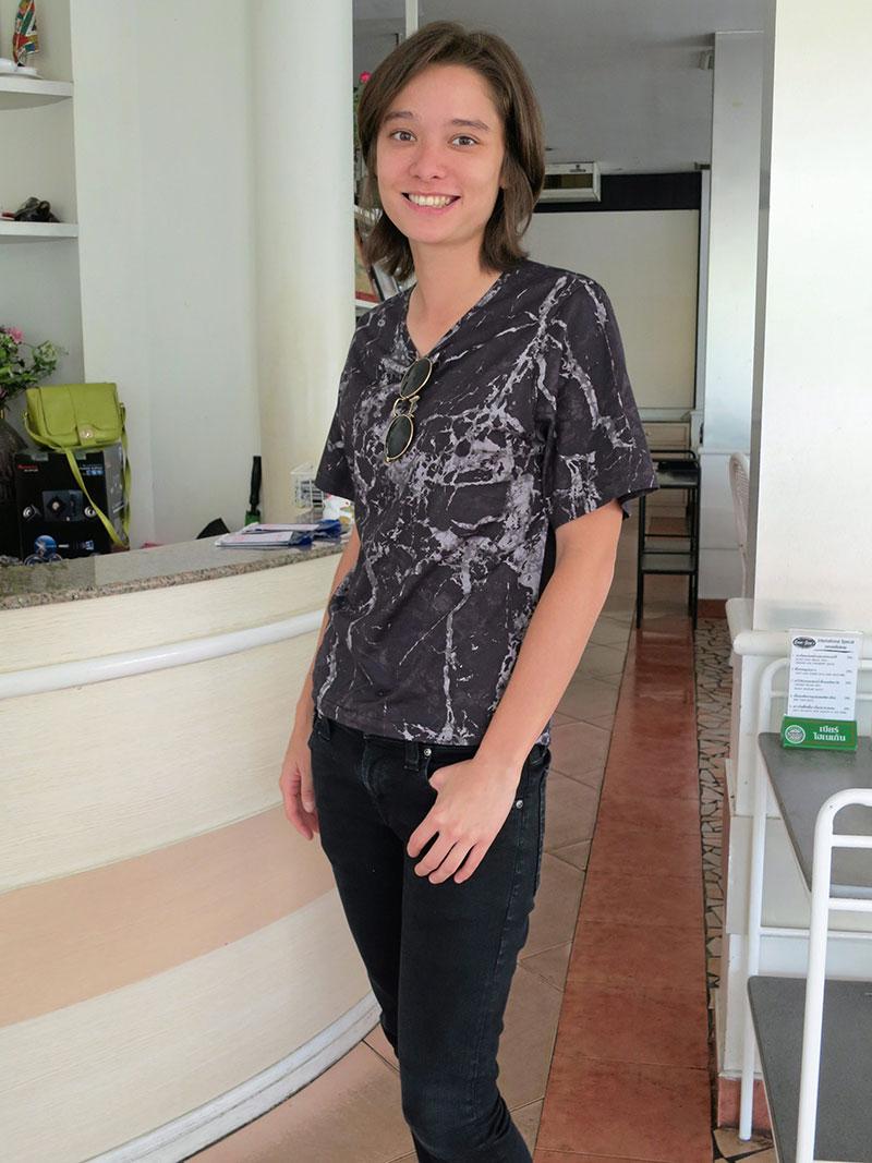 อีกสาวที่ไม่ได้จำกัดความรักแค่ระหว่างชาย-หญิง ขอให้เพียงมีความเข้าใจกัน “น้อย–ชุติมา จิตพิทักษ์” ผู้จัดการสาวแห่งเดอะไลบรารี่ รีสอร์ทสวยดังสวรรค์บนเกาะสมุย จ.สุราษฎร์ธานี บอกความในใจว่า ลุคของตัวเองไม่ได้เป็นแมน เป็นทอมจ๋า ยังใส่กระโปรง แต่งหน้าได้อย่างไม่เคอะเขิน มีความเป็นผู้หญิงตามธรรมชาติ แต่เรื่องบางเรื่อง เราก็ไม่จำเป็นต้องบอกให้ใครรู้ ถึงความรู้สึก ซึ่งที่ผ่านมาตั้งแต่เด็กๆ มีคนมาชื่นชอบทั้งผู้หญิงและผู้ชาย เพราะตอนอยู่โรงเรียนก็เป็นนักกีฬา เล่นกีฬามาตั้งแต่ 10 ขวบ เล่นเทนนิสจนติดทีมชาติ ความที่เป็นนักกีฬาเลยทำให้เรามีความคล่อง ตัว ลุคเป็นนักกีฬามากกว่า
