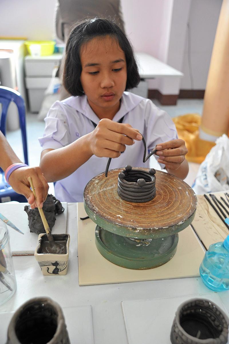 สำหรับอาคารศิลป์ศิริ นับเป็นอาคารหลังใหม่ล่าสุดของโรงเรียนเฉลิมพระเกียรติ 48 พรรษา ที่สร้างขึ้นเพื่อใช้เป็นอาคารฝึกอาชีพ สำหรับนักเรียนที่สนใจงานด้านการปั้นและเผาเซรามิก การทอผ้าไหม การผลิตน้ำดื่มเพื่อจำหน่าย ตลอดจนงานศิลปหัตถกรรมต่างๆ โดยสมเด็จพระเทพ รัตนราชสุดาฯ ได้ทอดพระเนตรงานอาชีพต่างๆ ด้วยความสนพระทัย และทรงวาดภาพลงในจานกระเบื้องเป็นที่ระลึก พร้อมรับสั่งชื่นชมว่า การที่ให้เด็กๆมีอาชีพแบบนี้คือสิ่งที่ดี และทรงดีพระทัยที่เห็นพัฒนาการที่ก้าวหน้าขึ้นเรื่อยๆของโรงเรียน อีกทั้งยังโปรดยาสีฟันผสมใบข่อย และน้ำพริกเผาลำไย ที่เด็กนักเรียนช่วยกันทำออกจำหน่าย เพื่อเป็นการฝึกฝีมือและหารายได้สนับสนุนการศึกษาของโรงเรียนอีกทางหนึ่ง โอกาสนี้ยังทรงโยนกล้าพันธุ์ข้าวเหนียว พันธุ์สันป่าตอง 1 ลงในแปลงนา ซึ่งเป็นหนึ่งในพื้นที่ต้นแบบเรื่องเศรษฐกิจพอเพียงที่ทางโรงเรียนพยายามส่งเสริมให้กับเด็กๆ