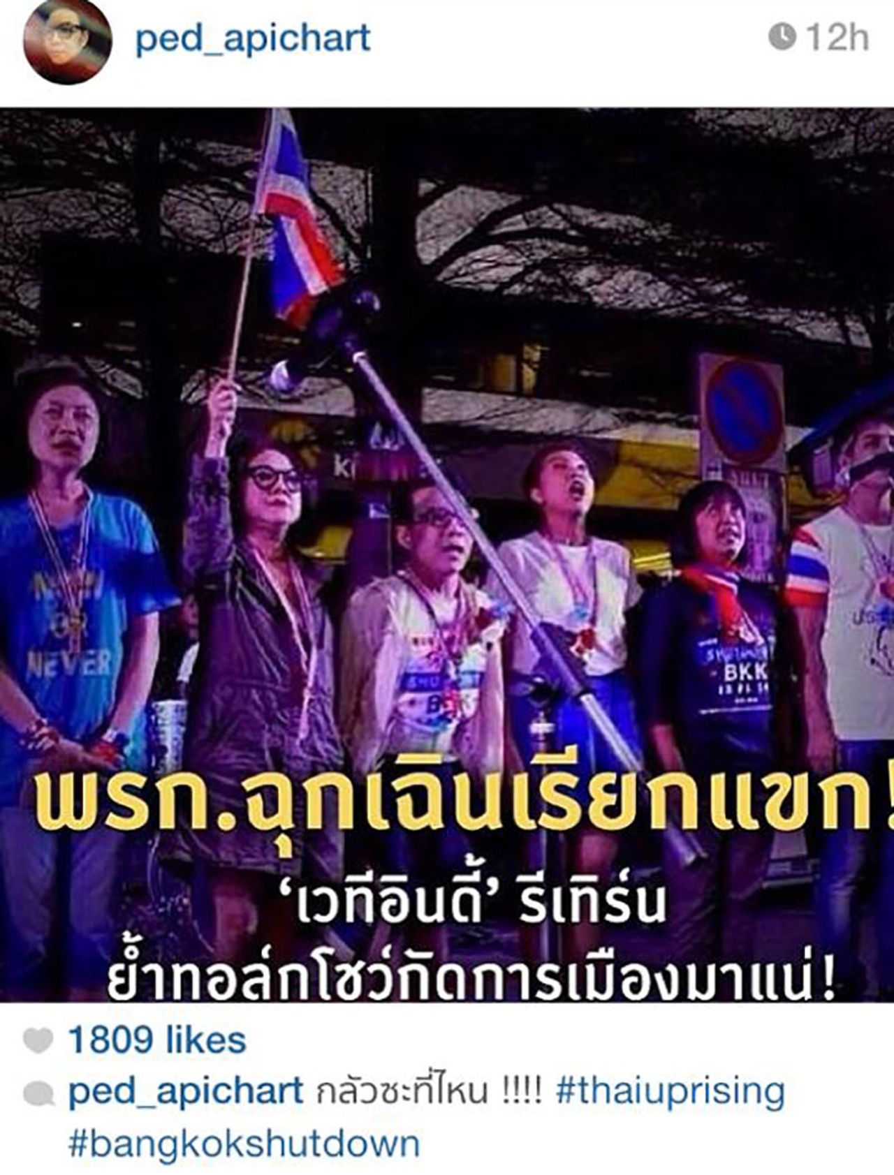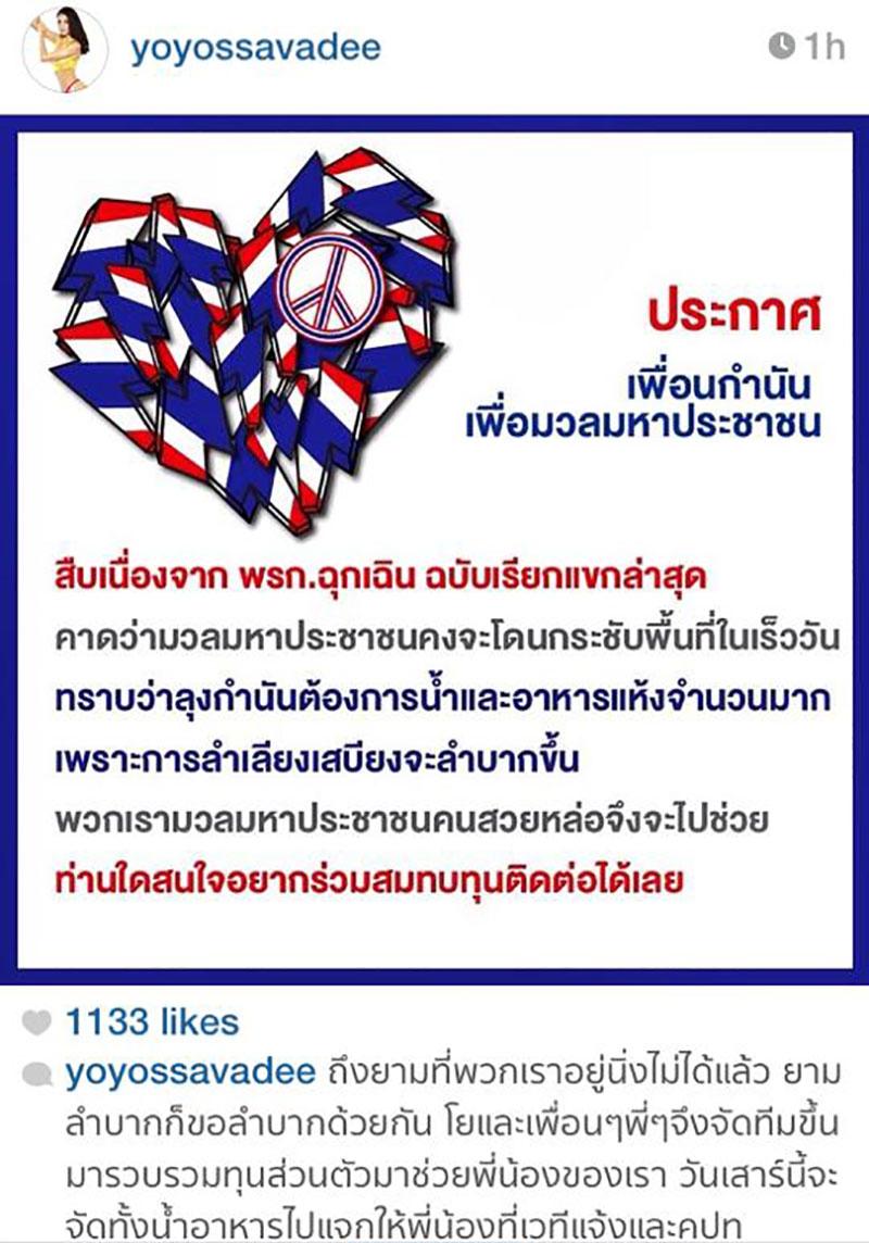 ดูเหมือนว่าบรรยากาศของการชุมนุมจะคึกคักยิ่งกว่าเดิม เหมือน พ.ร.ก.ฉุกเฉิน จะเป็นการเรียกแขกให้เนืองแน่นกว่าเดิมจริงๆ รวมไปถึงเหล่าคนดัง ศิลปิน ดารา นักแสดง ที่พร้อมใจกันออกมาร่วมเดินขบวน ขึ้นเวทีปราศรัย เพื่อแสดงจุดยืนทางการเมืองกันอย่างคับคั่ง โดยเฉพาะ 'เวทีอินดี้ชิดลม' ที่เรียกได้ว่าเป็นจุดรวมของเหล่าคนดังไว้ที่นั่นเลยก็ว่าได้ เหล่าคนดังยังคงโพสต์ภาพ-ข้อความ ขณะเดินทางไปร่วมชุมนุมลงในอินสตาแกรมของตนเองอย่างต่อเนื่อง ซึ่งร่วมกันทำกิจกรรมมากมาย บ้างก็ขึ้นปราศรัย ร้องเพลง เล่นตลกล้อเลียนเสียดสีการเมือง ขายเสื้อ ประมูลของ หรือเดินถือกล่องรับบริจาคเงินเข้า กปปส. อย่างไม่เกรงกลัวการประกาศ พ.ร.ก.ฉุกเฉินแม้แต่น้อย ซึ่งจะมีใครบ้าง ไทยรัฐออนไลน์ก็ได้รวบรวมมาให้ได้ดูกัน !