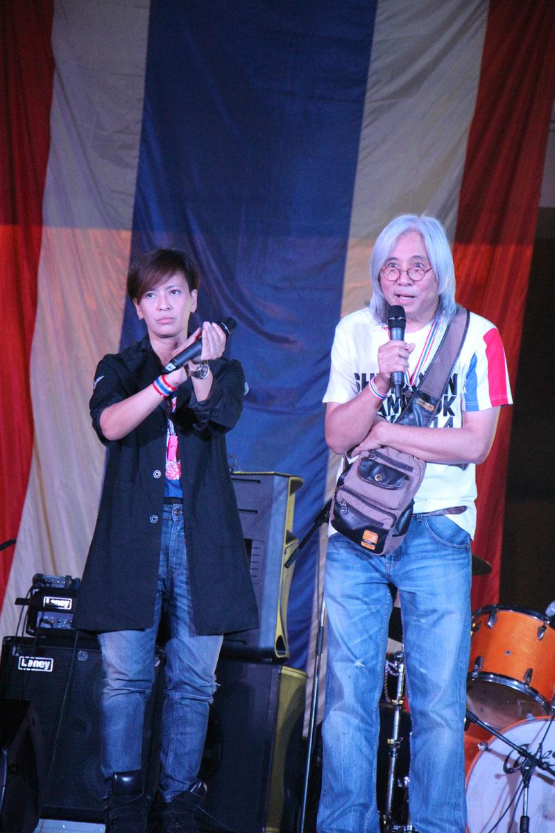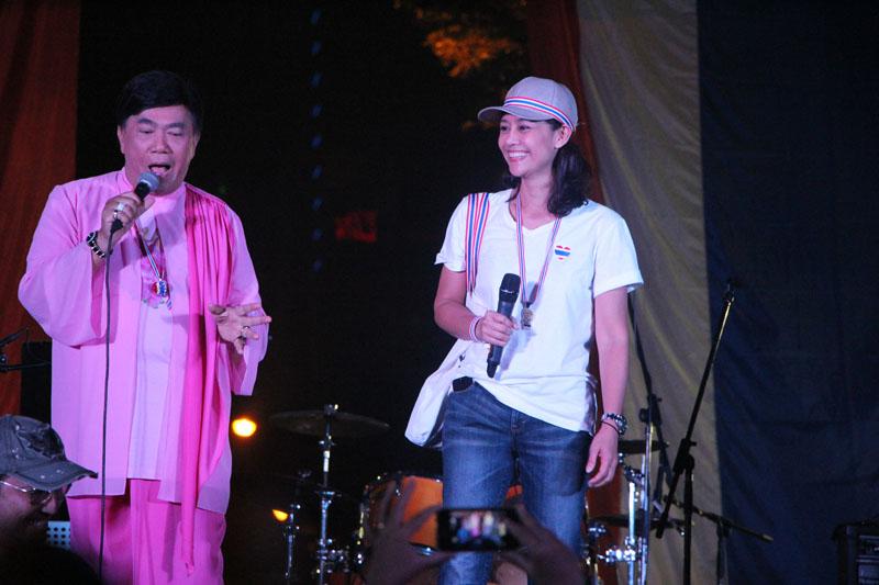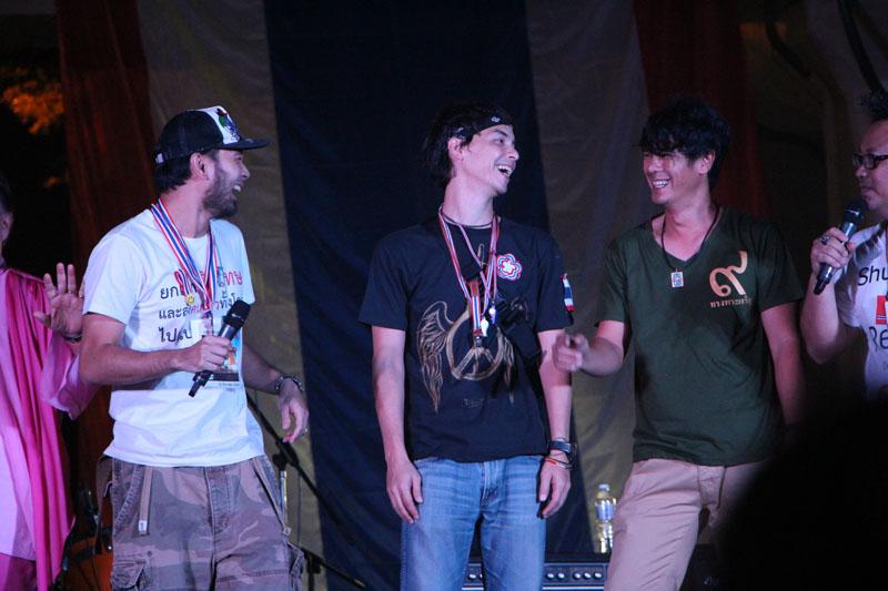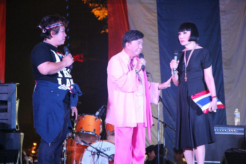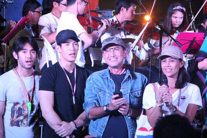 หลังจากนั้นได้มีบรรดาคนดัง ดารา นักแสดงคับคั่ง ตบเท้าขึ้นเวทีนี้เพื่อแนะนำตัว และบอกว่า ศรส. จะได้ออกหมายเรียกไม่ผิดคน ซึ่งงานนี้เรียกความสนใจได้จากผู้ชุมนุมเป็นอย่างดี เพราะนักแสดงรุ่นใหญ่ออกกันมาคับคั่งนำโดย ดาราขวัญใจมวลมหาประชาชนอย่าง นก สินจัย, นก ฉัตรชัย เปล่งพานิช