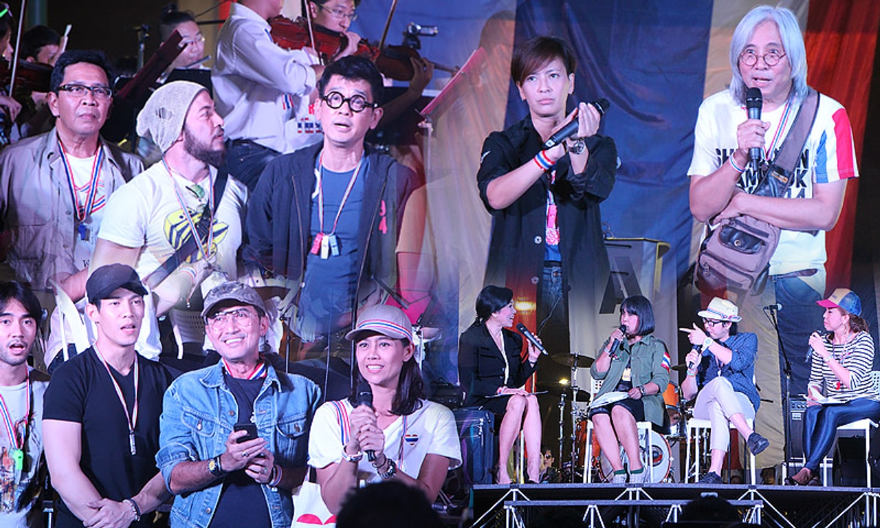 นอกจากนั้นวานนี้ (26 ม.ค.) ยังมีการแสดงสุดอลังการ และเรียกความประทับใจจากผู้ชุมนุมได้เป็นอย่างดี มีการแสดงจากวงออเคสตร้า 25 ชีวิตอัดกันบนเวทีเล็กๆ แต่เต็มไปด้วยพลังมาร่วมบรรเลงบทเพลงต่างๆ และยังมีศิลปินแห่งชาติ ผู้ประพันธ์เพลงแผ่นดินของเราอย่าง 'ท่านผู้หญิงมณีรัตน์ บุนนาค' มาขับร้องเพลงนี้ให้ได้ฟังกัน เรียกได้ว่าเวทีนี้เป็นเวทีประวัติศาสตร์ของใครหลายๆ คน