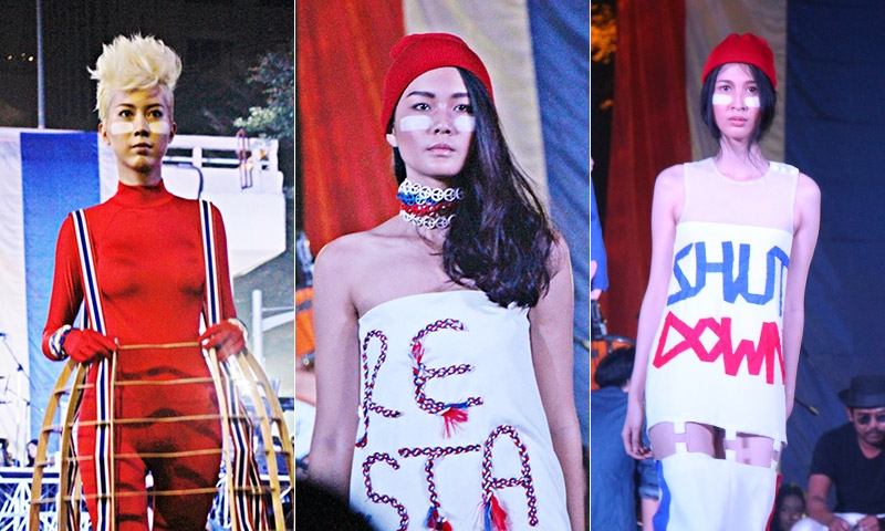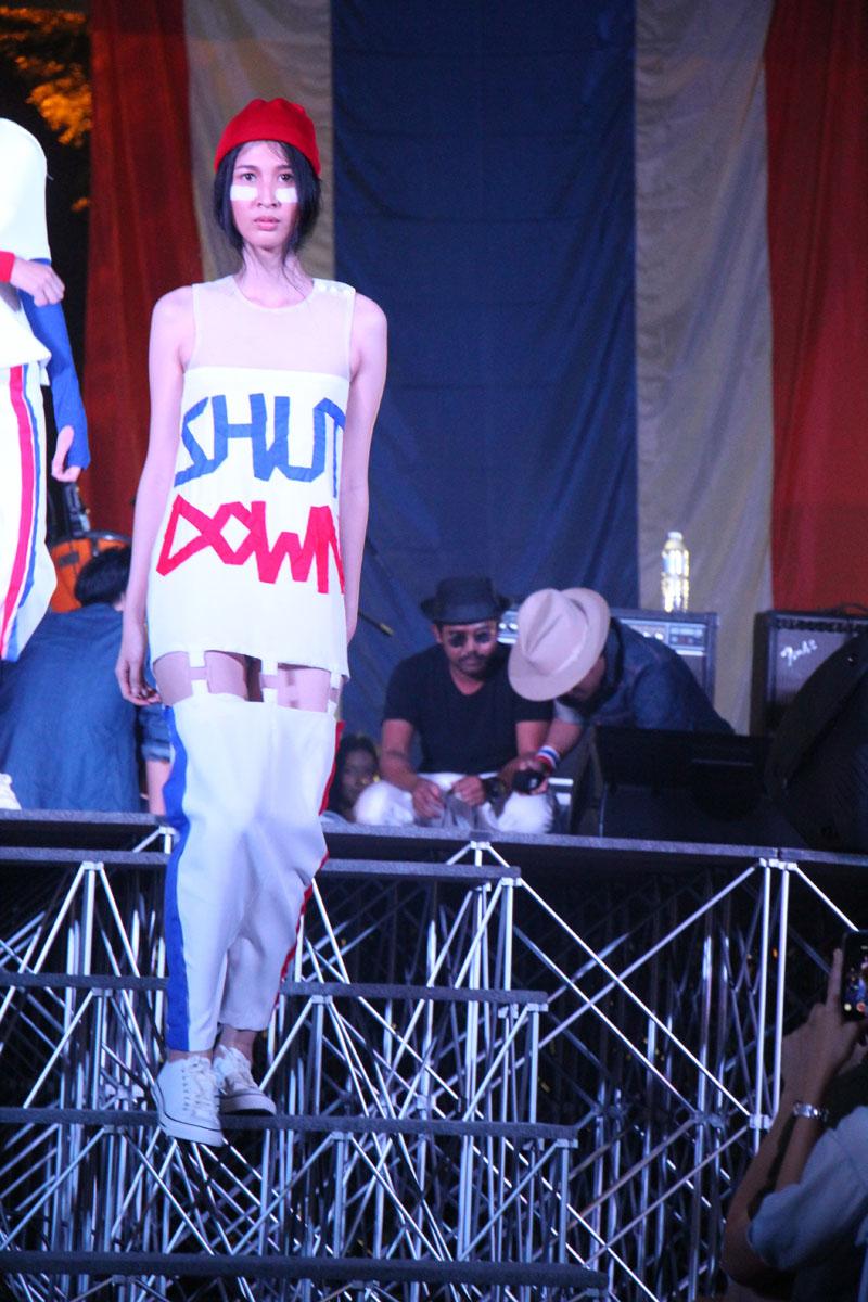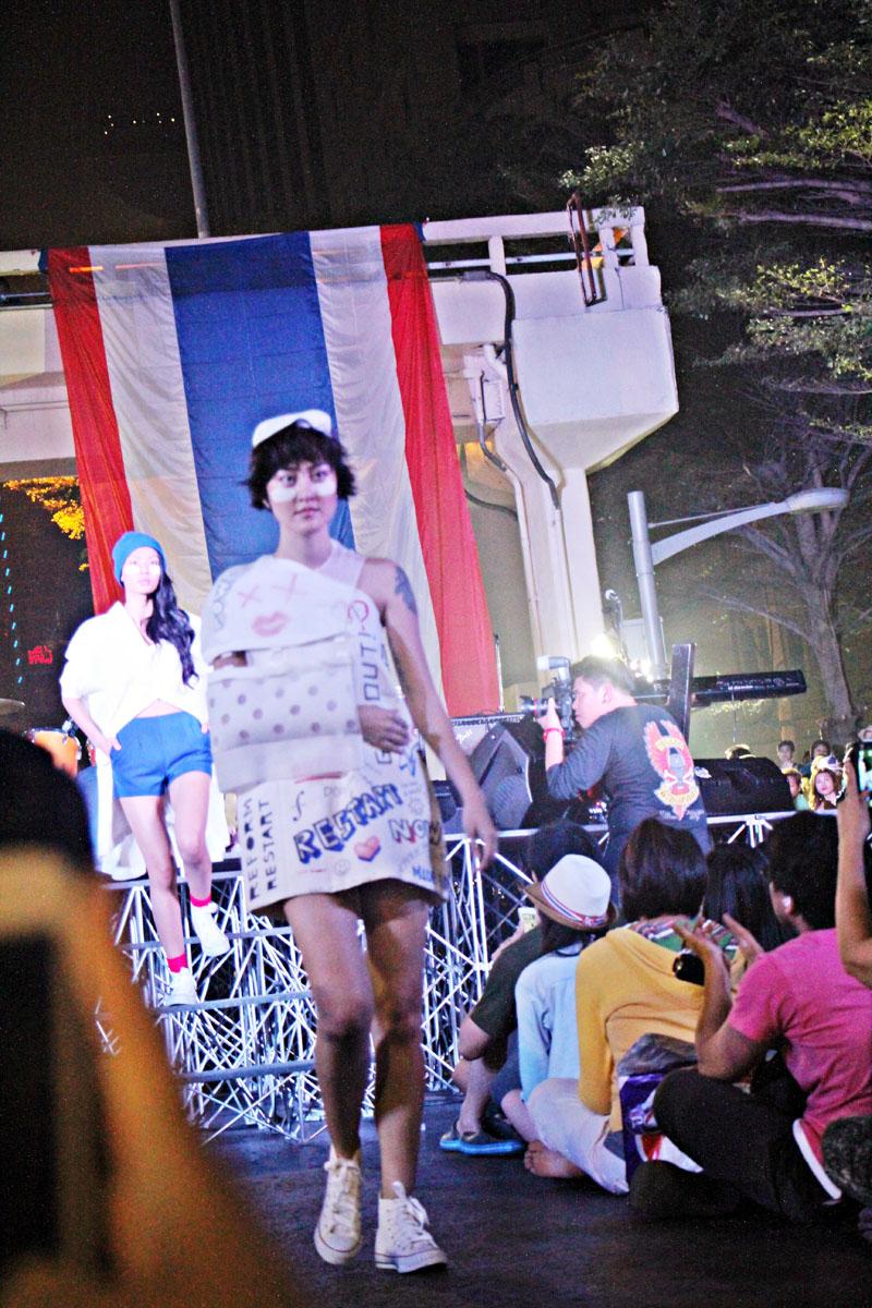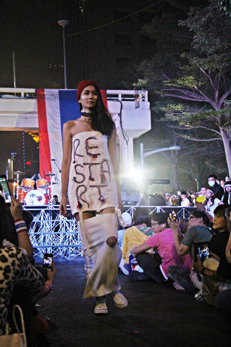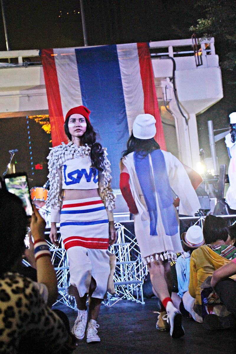 นอกจากคนในวงการบันเทิงแล้ว ยังมีวงการแฟชั่นและศิลปะ ที่จับมือกันออกแบบแฟชั่นโชว์สุดอลังการ สร้างสรรค์ สุดเก๋ประทับใจผู้ที่มาชุมนุมกันแบบไม่รู้ลืม เพราะนอกจากจะได้มานั่งชิล ฟังเพลง ดูการแสดง ฟังปราศรัยแสบๆ คันๆ ของบรรดาคนดังแล้ว ยังได้มาดูการเดินแบบเก๋ๆ ของเหล่านางแบบ ซึ่งเป็นการเดินแบบแฟชั่นโชว์จาก FEVER RUNWAY โรงเรียนสอนเดินแบบและพัฒนาบุคลิกภาพ มีการผสมผสานของเสื้อผ้าและอุปกรณ์ต่างๆ อย่างเช่น นกหวีด ซึ่งแฟชั่นโชว์นี้มีธีมคือ "การรวมตัวกันของสี ให้อยู่ร่วมกันอย่างไม่แตกแยก"