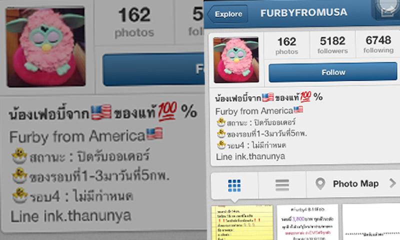 ความคืบหน้า วันที่ 8 กุมภาพันธ์ 2556 พ.ต.อ.ประสพโชค พร้อมมูล รอง ผบก.ป. พ.ต.อ.ปิยะ เจริญสุข ผกก.1 บก.ป. พ.ต.ท.พงษ์ไสว แช่มลำเจียก พนักงานสอบสวนผู้ชำนาญการพิเศษ กก.1 บก.ป. แถลงข่าวความคืบหน้าการสอบสวนคดีหลอกขายตุ๊กตาเฟอร์บี้ หลังจากมีกลุ่มผู้เสียหายเป็นจำนวนมากเข้าแจ้งความ และเรียกตัวผู้ต้องสงสัยที่เกี่ยวข้องเข้ามาสอบสวนตั้งแต่กลางดึกวันที่ 7 กุมภาพันธ์ว่า กรณีการสั่งซื้อตุ๊กตาเฟอร์บี้จากผู้ที่เผยแพร่ทางอินสตาแกรม เครือข่ายสังคมออนไลน์จนมีผู้หลงเชื่อสั่งซื้อและโอนเงินให้ จนถึงขณะนี้มีผู้เสียหายเข้าแจ้งความพนักงานสอบสวนแล้ว 52 คน เบื้องต้นมูลค่าความเสียหายประมาณ 6-7 ล้านบาท และยังมีผู้เสียหายที่ลงชื่อไว้ยังไม่ได้สอบปากคำอีกจำนวนหนึ่ง
