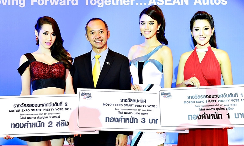 นายชลัทชัย ปภัสร์พงษ์ รองประธานจัดงาน “มหกรรมยานยนต์ ครั้งที่ 30” ควบคุมงานด้านการบริหารงานทั่วไป มอบรางวัลแก่พริตตี้ที่ชนะการประกวด “MOTOR EXPO Smart Pretty Vote 2013” โดยพริตตี้ที่ได้รับคะแนนโหวตสูงสุดผ่านทางคูปอง