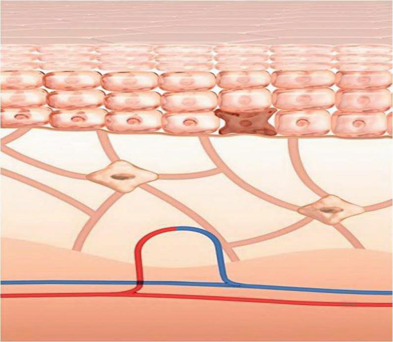 ในส่วน ชั้นหนังแท้ เป็นผิวชั้นที่มีความสำคัญมาก มีคอลลาเจน และอีลาสติน ทำให้ผิวหนังยืดหยุ่น รวมทั้งมีหลอดเลือดฝอย, ใยประสาท, ต่อมเหงื่อ และต่อมไขมัน ซึ่งต่อมไขมันทำหน้าที่ผลิตซีบัมที่ช่วยเคลือบผิวหนังไม่ให้สูญเสียความชุ่มชื้น และ ชั้นไขมัน เป็นชั้นที่อยู่ใต้ชั้นผิวหนัง ประกอบไปด้วยเซลล์ไขมัน และมีเส้นประสาท, เส้นเลือด และท่อน้ำเหลือง ชั้นไขมันทำหน้าที่ช่วยสะสมพลังงานความร้อนไม่ให้สูญเสียออกนอกร่างกาย และช่วยปกป้องร่างกาย ซึ่งนักวิจัยของชิเซโด้ ค้นพบว่า การที่ผิวจะดูกระจ่างใสขึ้นดุจผิวในอุดมคติได้ผิวในแต่ละชั้นต้องมีการทำงานอย่างราบรื่น