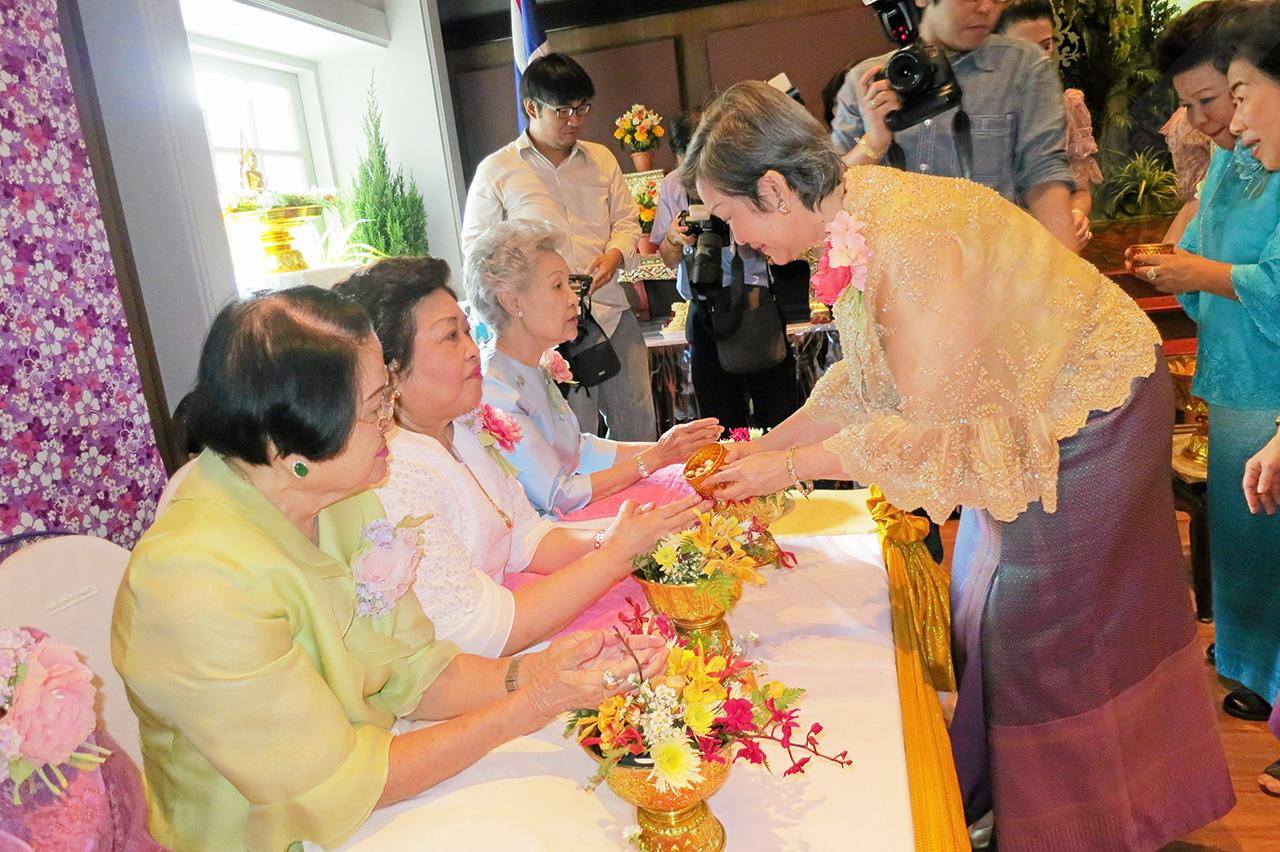 ร่วมสืบสานประเพณีอันดีงามของไทยในวันผู้สูงอายุ หนึ่งในวันสำคัญของช่วงเทศกาลสงกรานต์ที่ผ่านมา หลายภาคส่วนได้จัดพิธีรดน้ำดำหัวขอพรผู้สูงอายุ เพื่อเป็นสิริมงคล และแสดงความกตัญญูกตเวทีต่อผู้หลักผู้ใหญ่อีกด้วย โดย สภาสตรีแห่งชาติในพระบรมราชูปถัมภ์ ได้จัดงาน “พิธีรดน้ำขอพรผู้อาวุโส” เป็นประจำทุกปี ซึ่งปีนี้ประธานสภาสตรีแห่งชาติฯ สุพัฒนา อาทรไผท นำสมาชิกเข้ารดน้ำขอพรผู้ใหญ่ อาทิ ท่านผู้หญิงสุมาลี จาติกวนิช,พลตรีหญิง คุณหญิงอัสนีย์ เสาวภาพ, คุณหญิงโรส บริบาลบุรีภัณฑ์, คุณหญิงกุลทรัพย์ เกษแม่นกิจ ฯลฯ ที่หอประชุมมนังคศิลา ถนนหลานหลวง เมื่อเร็วๆนี้ โดยบรรยากาศในงานครึกครื้นไปด้วยเหล่าสมาชิกที่ร่วมอนุรักษ์วัฒนธรรมไทย ด้วยการแต่งชุดไทยประยุกต์สวยงาม