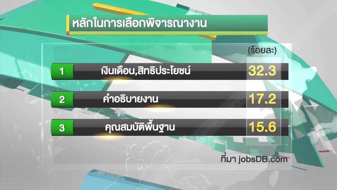 นอกจากทักษะของอาชีพแล้ว ผลสำรวจของบริษัท จ๊อบส์ดีบี ยังชี้ให้เห็นว่า อัตราเงินเดือนเป็นปัจจัยหลักที่ผู้หางานใช้พิจารณาเลือกงาน ซึ่งอาชีพที่มีฐานเงินเดือนมากที่สุดคืองานบริหาร เฉลี่ย 64,200 บาทต่อเดือน รองลงมาเป็นพนักงานธนาคาร พนักงานการเงิน และพนักงานด้านอสังหาริมทรัพย์