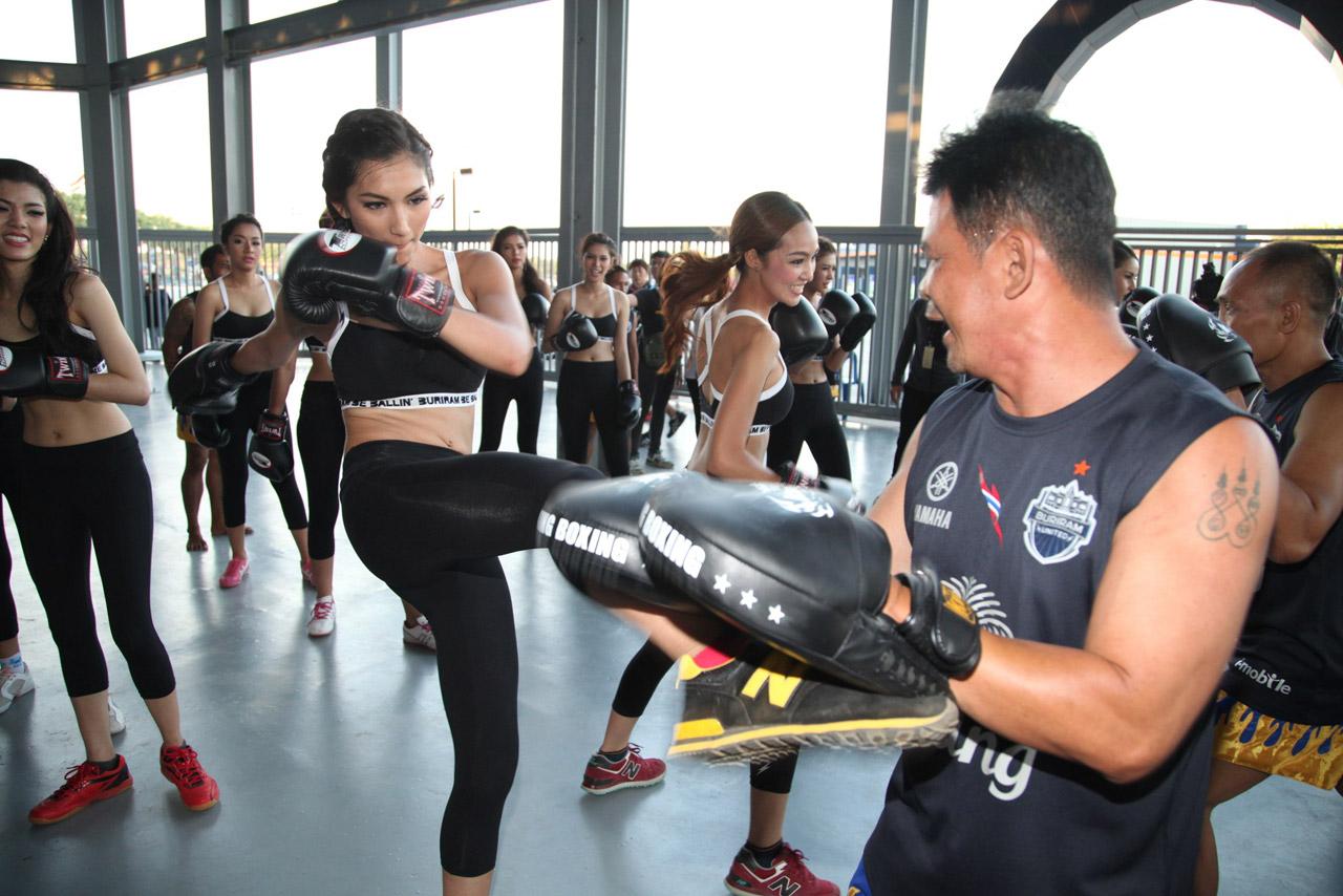 จากนั้นจึงไปที่ สถานที่ออกกำลังกายแห่งใหม่ในรูปแบบมวยไทยที่ค่าย “บุรีรัมย์ บี บ๊อกซิ่ง” ซึ่งอยู่บริเวณด้านล่างอัฒจรรย์ ไอ-โมบาย สเตเดี้ยม เพื่อร่วมกิจกรรมลองซ้อมศิลปะแม้ไม้มวยไทยเรียกเหงื่อกันนิดหน่อย แล้วจึงทัวร์สนามฟุตบอล ไอ-โมบาย สเตเดียม หรือ ธันเดอร์ คาสเซิล โดยรับการอนุญาตเป็นพิเศษจาก นายเนวิน ชิดชอบ ประธานสโมสรฟุตบอล บุรีรัมย์ ยูไนเต็ด ให้ได้สัมผัสสนามหญ้าจริงในสนามการแข่งขัน พาทัวร์ห้องพักนักกีฬา ห้องแต่งตัว และห้องต่างๆ แบบเอ็กซคลูซีฟ