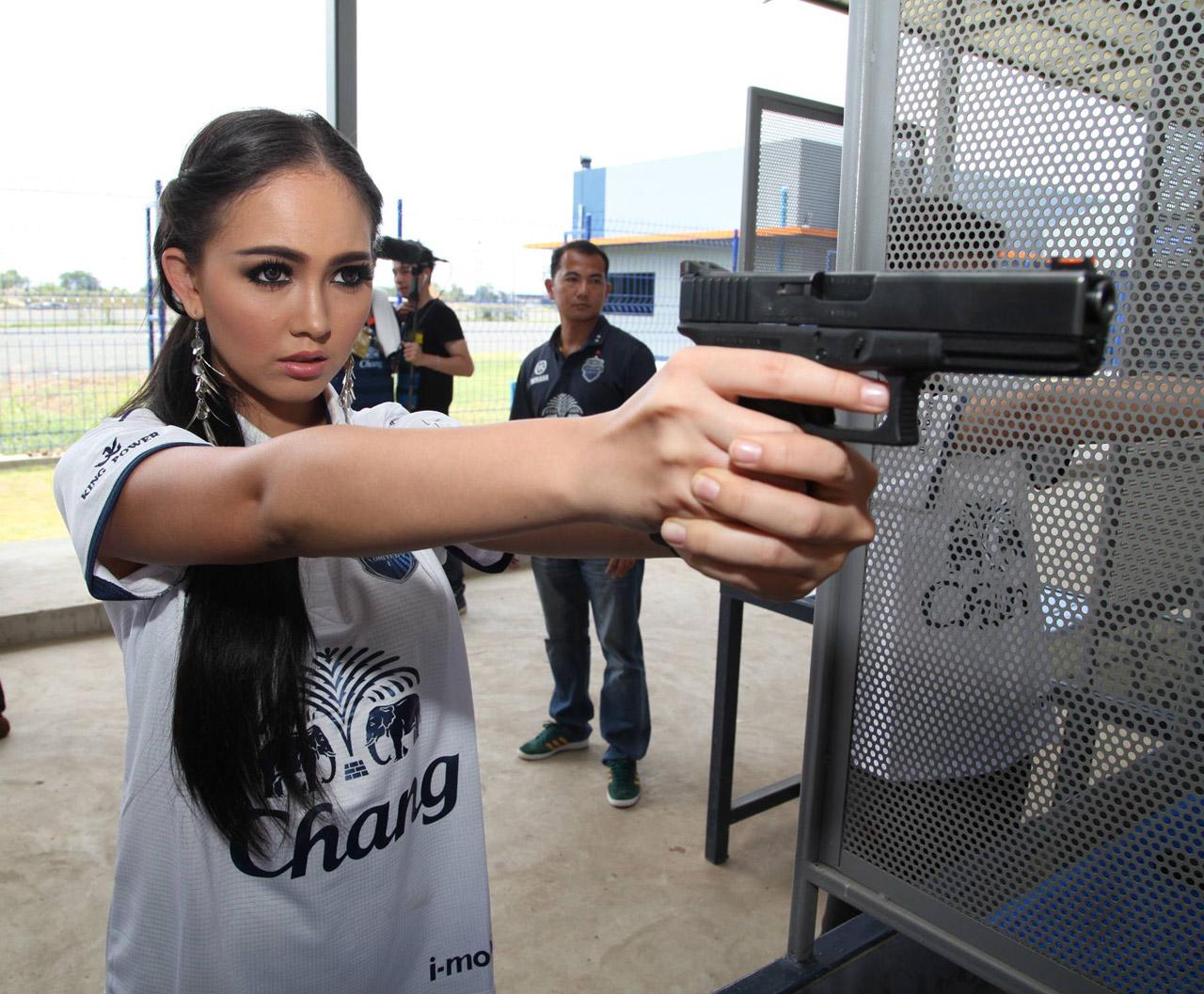 จากนั้นต่อด้วยกีฬายิงปืน ที่สนามยิงปืน บุรีรัมย์ ยูไนเต็ด ชู๊ตติ้ง คลับ สาวๆดูจะชื่นชอบและตื่นเต้นที่มีโอกาสจับปืนและเล็งเป้าจริงๆ ยิงลูกจริง จนหมายมั่นอยากจะฝึกฝนจริงจังเลยทีเดียว ช่วงบ่ายเป็น กิจกรรมอบรมผู้เข้าประกวดนางงาม โดย ณวัฒน์ อิสรไกรศีล ผู้อำนวยการกองประกวด มิสแกรนด์ ไทยแลนด์ 2014