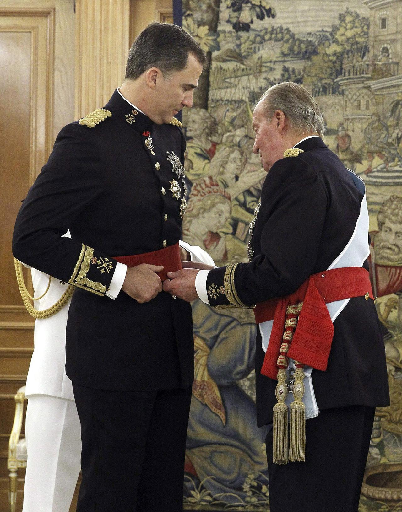 พระราชพิธีเริ่มต้นจากสมเด็จพระราชาธิบดีฮวน คาร์ลอส ทรงลงพระปรมาภิไธยสละราชสมบัติอย่างเป็นทางการในเวลาเที่ยงคืน ตามเวลาท้องถิ่นของวันที่ 18 มิ.ย. รุ่งขึ้นได้มีพระราชพิธีบรมราชาภิเษกซึ่งจัดขึ้นที่พระราชวังซาร์ซุเอลา โดยเวลา 09.30 น. สมเด็จพระราชาธิบดีเฟลิเป ที่ 6 ในฉลองพระองค์ชุดเครื่องแบบทหาร ทรงรับมอบสายคาดบั้นพระองค์ไหมสีแดงจากพระราชบิดา อันเป็นสัญลักษณ์ประจำตำแหน่งผู้ บัญชาการกองทัพและประมุขของประเทศตามรัฐธรรมนูญสเปน จากนั้นสมเด็จพระราชาธิบดีเฟลิเป ที่ 6 เสด็จฯพร้อมด้วยพระราชินีเลติเซีย และพระราชธิดาทั้ง 2 พระองค์ คือเจ้าหญิงเลโอนอร์และเจ้าหญิงโซเฟีย โดยรถยนต์พระที่นั่งมาทรงร่วมพิธีที่รัฐสภา ใจกลางกรุงมาดริด โดยมีพระราชินีโซเฟีย พระมารดา และเจ้าหญิงเอเลนา พระเชษฐภคินี มาร่วมพระราชพิธีด้วย