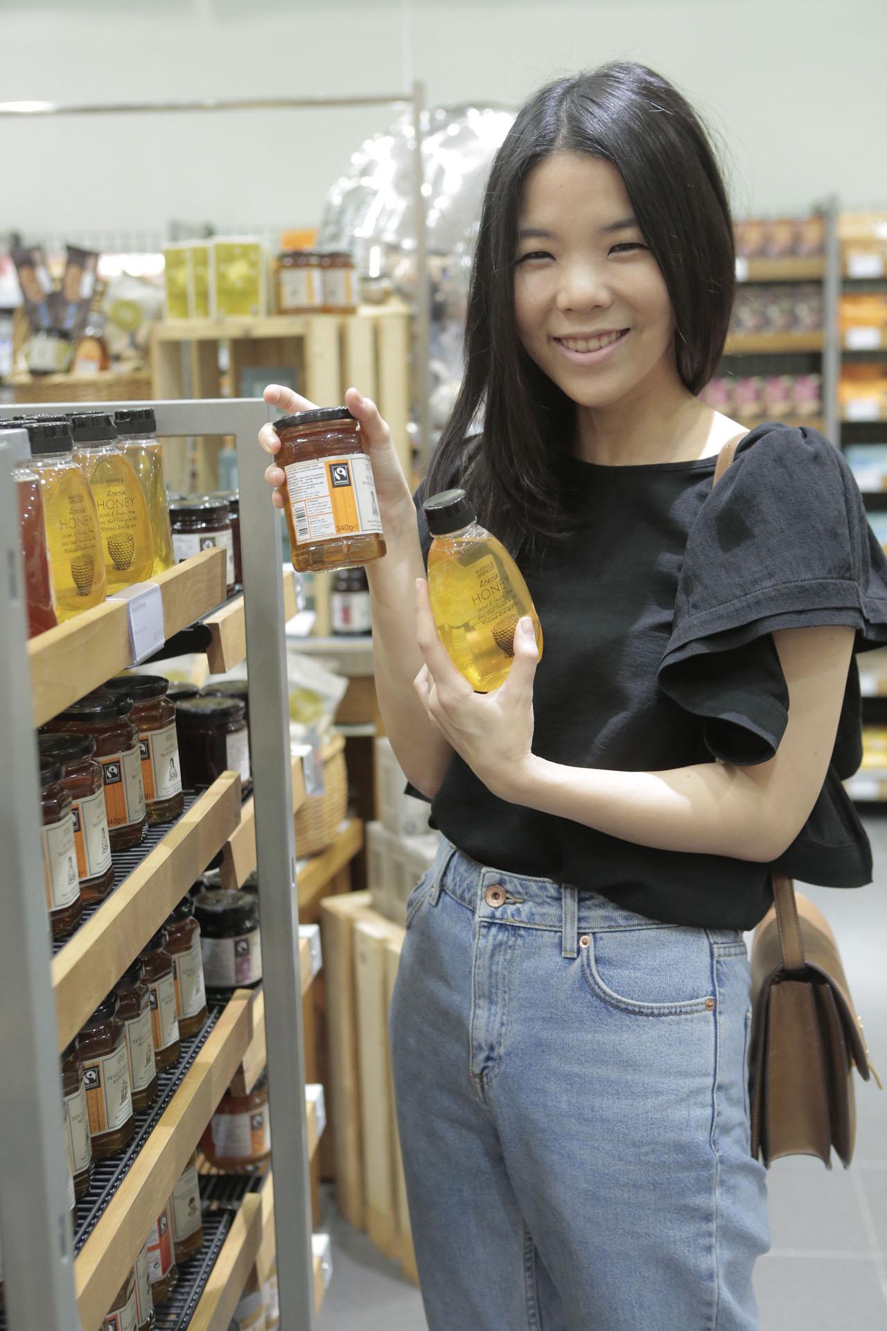 “เวลาเดินซื้อของที่มาร์คแอนด์สเปนเซอร์กับเดินซื้อที่ซูเปอร์มาร์เก็ตทั่วไป จะเห็นความแตกต่างอย่างชัดเจน เพราะของมาร์คฯ จะคุณภาพดีกว่ามาก ที่สำคัญทุกแพ็กเกจจะระบุข้อมูลไว้ชัดเจนว่ามีส่วนผสมอะไร ให้พลังงานเท่าไหร่ นอกจากนี้ ยังมีอาหารที่ควบคุมไขมันด้วย ทำให้เราเลือกได้ง่ายขึ้น ซึ่งข้อมูลในส่วนประกอบของผลิตภัณฑ์ถือว่าสำคัญมาก และควรที่ทุกคนจะต้องใส่ใจ ก่อนตัดสินใจเลือกซื้อผลิตภัณฑ์ ตอนนี้พอเปิดร้านขนมก็จะเลือกผลิตภัณฑ์หลายอย่างเข้าร้าน อย่าง ไดเจสต์ทีฟบิสกิต จะเอาไปทำฐานนิวยอร์กชีสเค้ก ส่วนที่มีติดบ้านไว้ตลอดคือพายกรอบสอดไส้ ราสเบอรี่ สำหรับร้านในรูปแบบใหม่นี้ รู้สึกชวนให้เดินช็อปฯ และเลือกได้สะดวกขึ้น มีการจัดวางแยกประเภทชัดเจน ดูสวยงาม ทำให้รู้สึกเพลินในการเลือก เพราะมีตัวเลือกมากขึ้นกว่าเดิมมากเลยค่ะ”