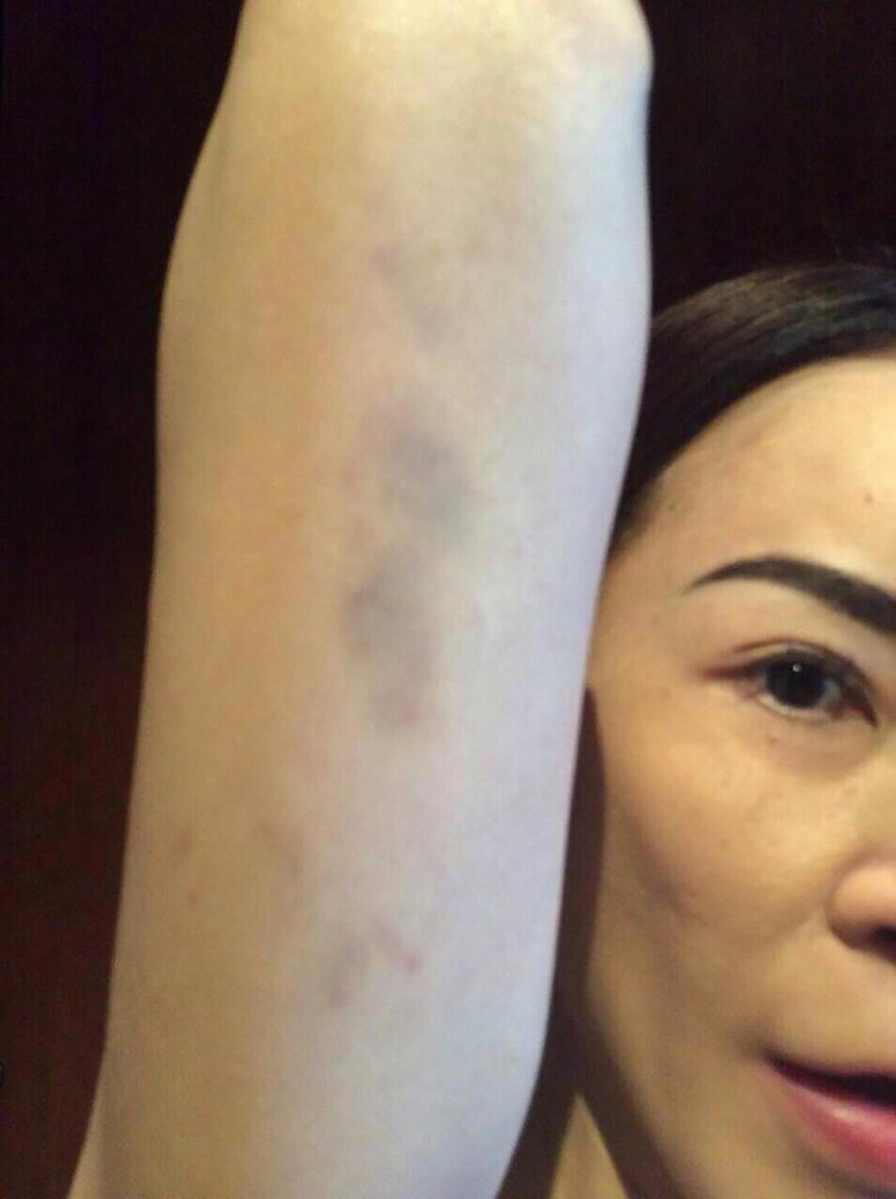 "ไม่มีค่ะ ไม่มีคนมาช่วยแท็กซี่ที่อยู่ตรงนั้นก็ไม่ช่วย จนเราต้องหอบร่างสะบักสะบอมขึ้นแท็กซี่ไปหาหมอเอง ถามเขาว่าทำไมไม่ช่วยเขาบอกว่านึกว่าผัวเมียทะเลาะกัน สิ่งที่ตอนนี้ก็เป็นกังวลใจคือ 1.ตำรวจ สน.ทุ่งมหาเมฆ ควรเข้ามาดูเรื่องนี้อย่างจริงจัง 2.เรามองว่าแท็กซี่กับมอเตอร์ไซค์อาจจะเป็นพวกเดียวกันรึเปล่า 3.ตรงที่เกิดเหตุ กทม. ควรจะเพิ่มไฟให้แสงสว่างหน่อยไหม เพราะมันมืดมาก ที่สำคัญนี่มันใจกลางเมืองแท้ๆ ยังเกิดเหตุได้โชคดีที่เราไม่ตาย เสียแค่หูฟังบลูทูธที่มันแตกไป"
