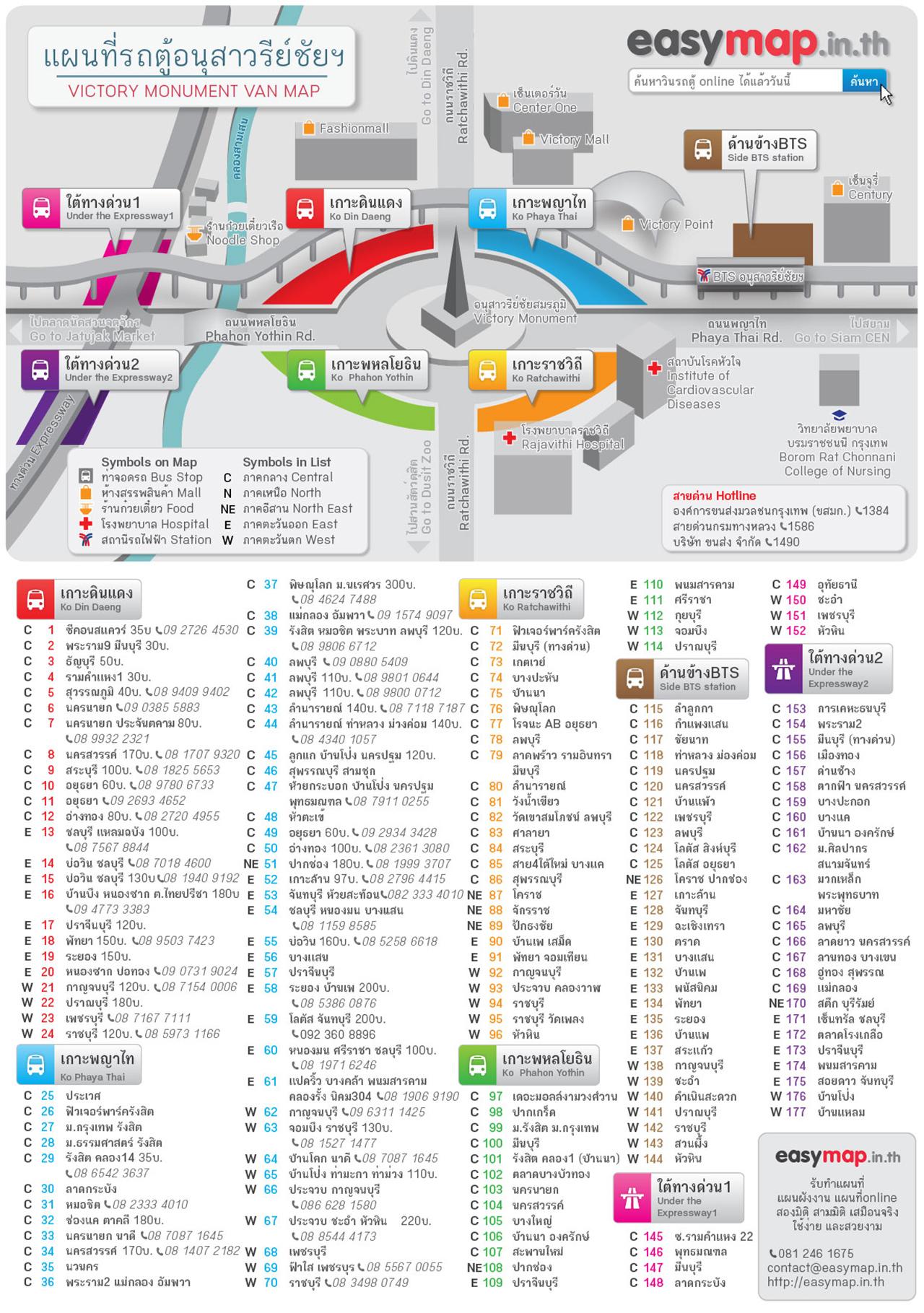 แผนที่นี้ได้มีการระบุวินรถตู้ในจุดต่างๆ บริเวณ 7 จุดด้วยกัน ประกอบด้วย เกาะราชวิถี, เกาะพญาไท, เกาะดินแดง, เกาะพหลโยธิน, ด้านข้างBTS, ใต้ทางด่วน 1, ใต้ทางด่วน 2 พร้อมมีรายละเอียดของรถตู้สายต่างๆ ที่ให้บริการในจุดนั้นๆ