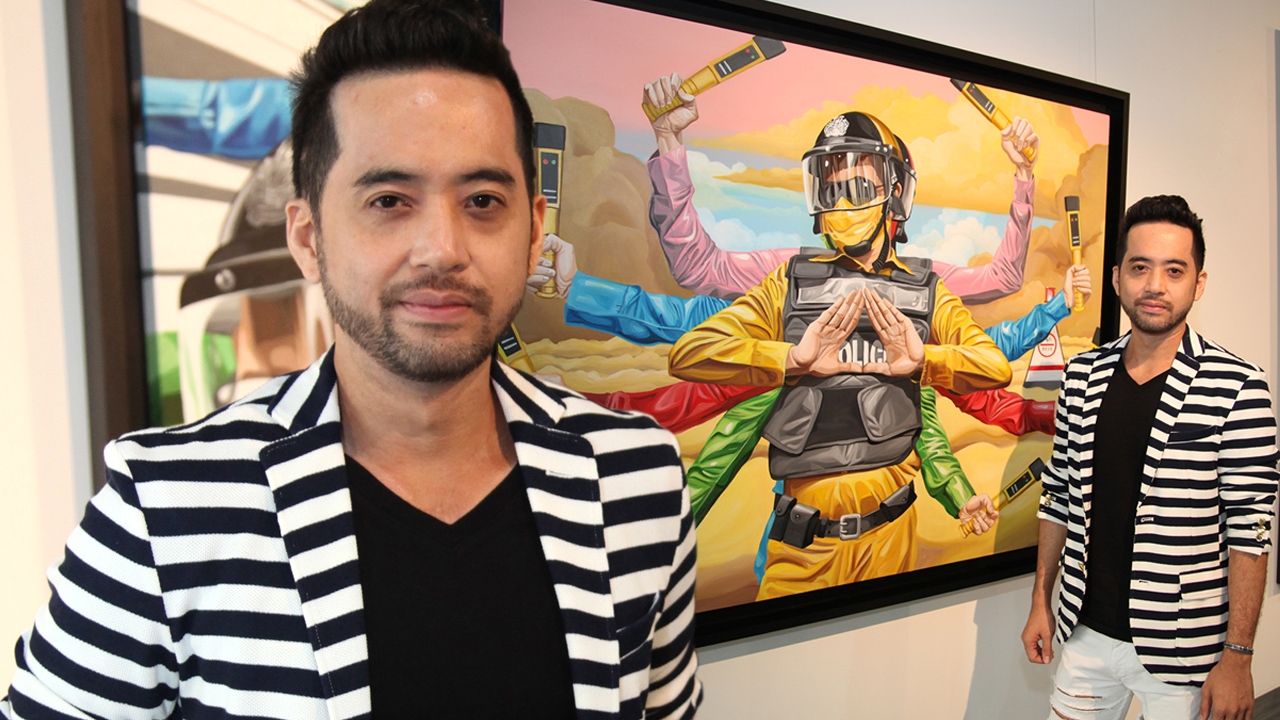 “สำหรับนิทรรศการชุด ดรามาไทส์ เป็นนิทรรศการที่สะท้อนมุมมองของการถูกกำกับการมีตัวตนอยู่ในสังคม รวมถึงเบื้องลึกเบื้องหลังของผู้คนที่ปิดบังซ่อนเร้นบางสิ่งไว้ โดยจะแบ่งออกเป็น 3 ซีรีส์ จาก 3 ศิลปิน ในส่วนของผมจะเป็นเรื่องราวความต้องการของผู้คนภายใต้เครื่องแบบอาชีพหรือยูนิฟอร์มที่คนในสังคมต่างพากันเคารพ ยกย่อง โดยเฉพาะอาชีพนักเรียน ตำรวจ กัปตัน หรือแม้กระทั่งพระสงฆ์ที่มีวาระบางอย่างซ่อนเร้น อยู่ภายใต้เครื่องแบบเหล่านั้น ที่ถูกคนในสังคมกำหนด หรือ กำกับให้ต้องเป็นแบบที่เห็น ทั้งๆ ที่ความจริงจะออกมาตรงกันข้ามก็ตาม งานครั้งนี้ของผมจะเป็นลักษณะแขวะกัดสังคมหน่อยๆ สิบแปดบวกนิดๆ (หัวเราะ)
