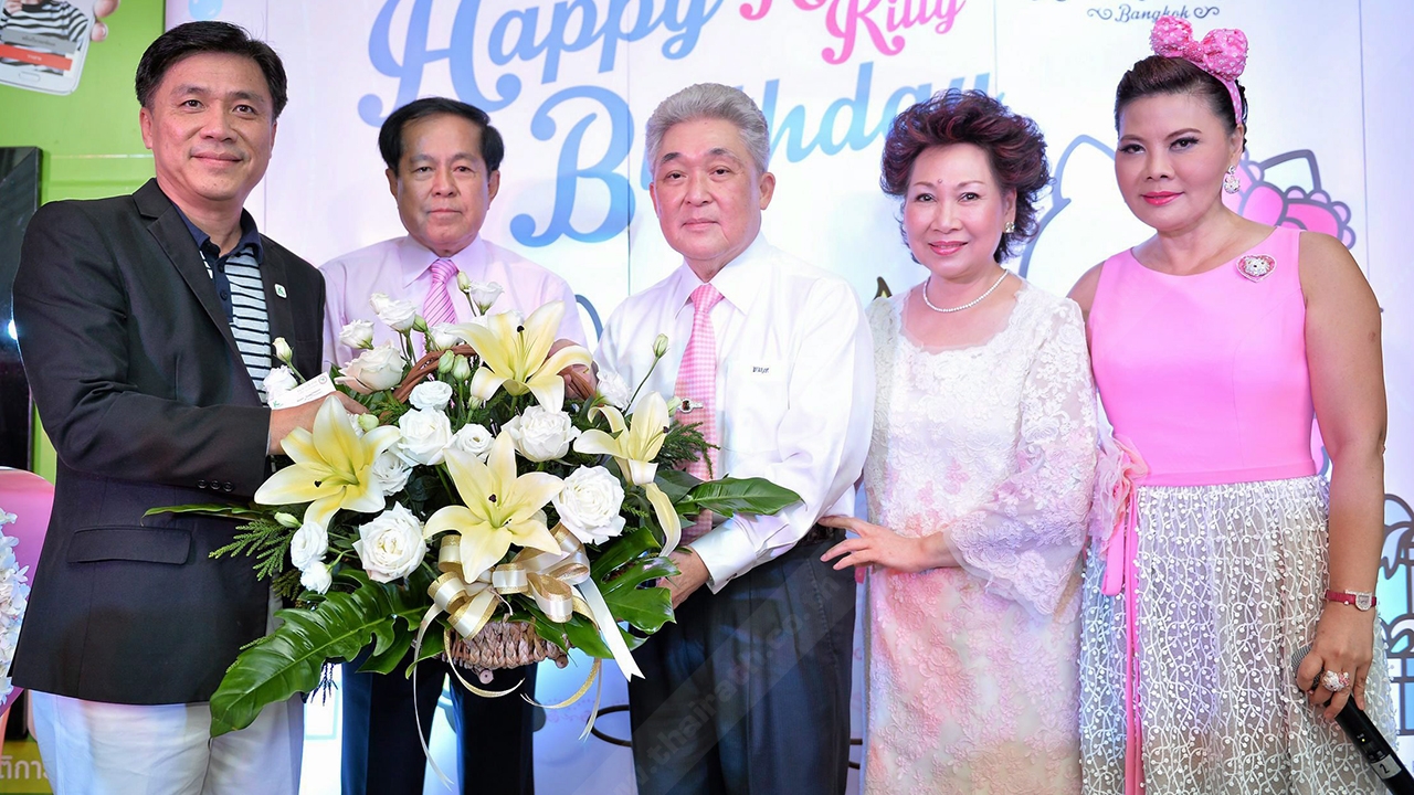 ผู้บริหารดรีมเฮาส์ ประเทศไทย ร่วมฉลองวันเกิดเฮลโล คิตตี้ พร้อมหน้า นำโดย กิตติ พงษ์ศักดิ์, ประวิทย์–อรัญญา มาลีนนท์ และรพีพรรณ เหลืองอร่ามรัตน์.