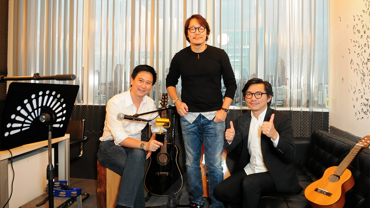 สุทธิศักดิ์ สุจริตตานนท์ และสมเกียรติ ลาภธนัญชัยวงศ์ ร่วมยินดีกับ อดิศร อธิคมชาคร ผู้คว้ารางวัลชนะเลิศประเภทเดี่ยว.