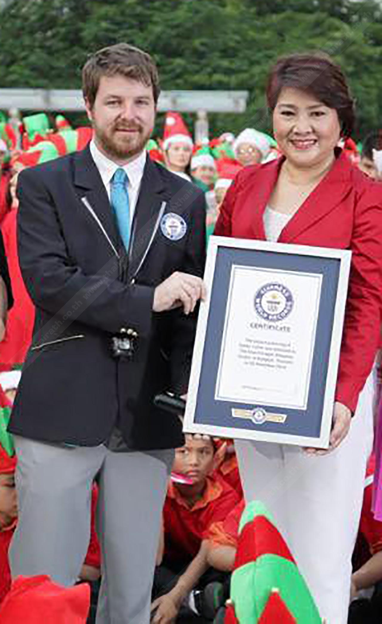 เคยทำลายสถิติเรียงตัวคนเป็นต้นคริสต์มาสที่ใหญ่ที่สุด เพื่อบันทึกลงกินเนสส์ เวิลด์ เรคคอร์ดส์ มาแล้วครั้งหนึ่ง มาปีนี้บอสใหญ่สยามพารากอน “ชฎาทิพ จูตระกูล” ขอทุบสถิติให้โลกได้รับรู้อีกครั้ง ด้วยการสร้างสถิติโลกครั้งใหม่กับกิจกรรมระดับโลกที่ชื่อว่า “กินเนสส์ เวิลด์ เรคคอร์ดส์ : เดอะ ลาจเจสท์ แกทเธอริ่ง ออฟ ซานต้า เอลฟ์ส” ระดมคนที่แต่งกายเป็นซานต้าเอลฟ์ส์มากที่สุดในโลก ณ ลานพาร์ค พารากอน ถึง 1,762 คน ถือเป็นการทุบสถิติโลกครั้งใหม่ของกินเนสส์ เวิลด์ เรคคอร์ดส์ ที่ก่อนหน้านี้ได้ทำไว้ ณ ประเทศอังกฤษ เมื่อปี 2556 ณ สวนสาธารณะ Stockled Park เมือง Wetherby ซึ่งใช้จำนวนประชากรเมืองผู้ดีกว่า 1,110 คน สำหรับครั้งนี้เป็นการรวมพลังความสามัคคีของเยาวชนไทยในโรงเรียนสังกัดเขตกรุงเทพมหานคร และเด็กๆ จากมูลนิธิอนุเคราะห์คนพิการ และมูลนิธิสงเคราะห์เด็กยากจน ซี.ซี.เอฟ.ฯ ที่มาร่วมกันสร้างความทรงจำในการทุบสถิติโลก ด้วยการแต่งกายชุดซานต้า เอลฟ์ส สีเขียวและสีแดง สีประจำเทศกาลคริสต์มาส พร้อมใบหูยาวยื่นออกมา และมายืนเรียงรายต่อกันเป็นจำนวนมากถึง 1,762 คน โดยจำนวนหนึ่งได้มายืนเรียงตัวกันเป็นตัวอักษร SIAM