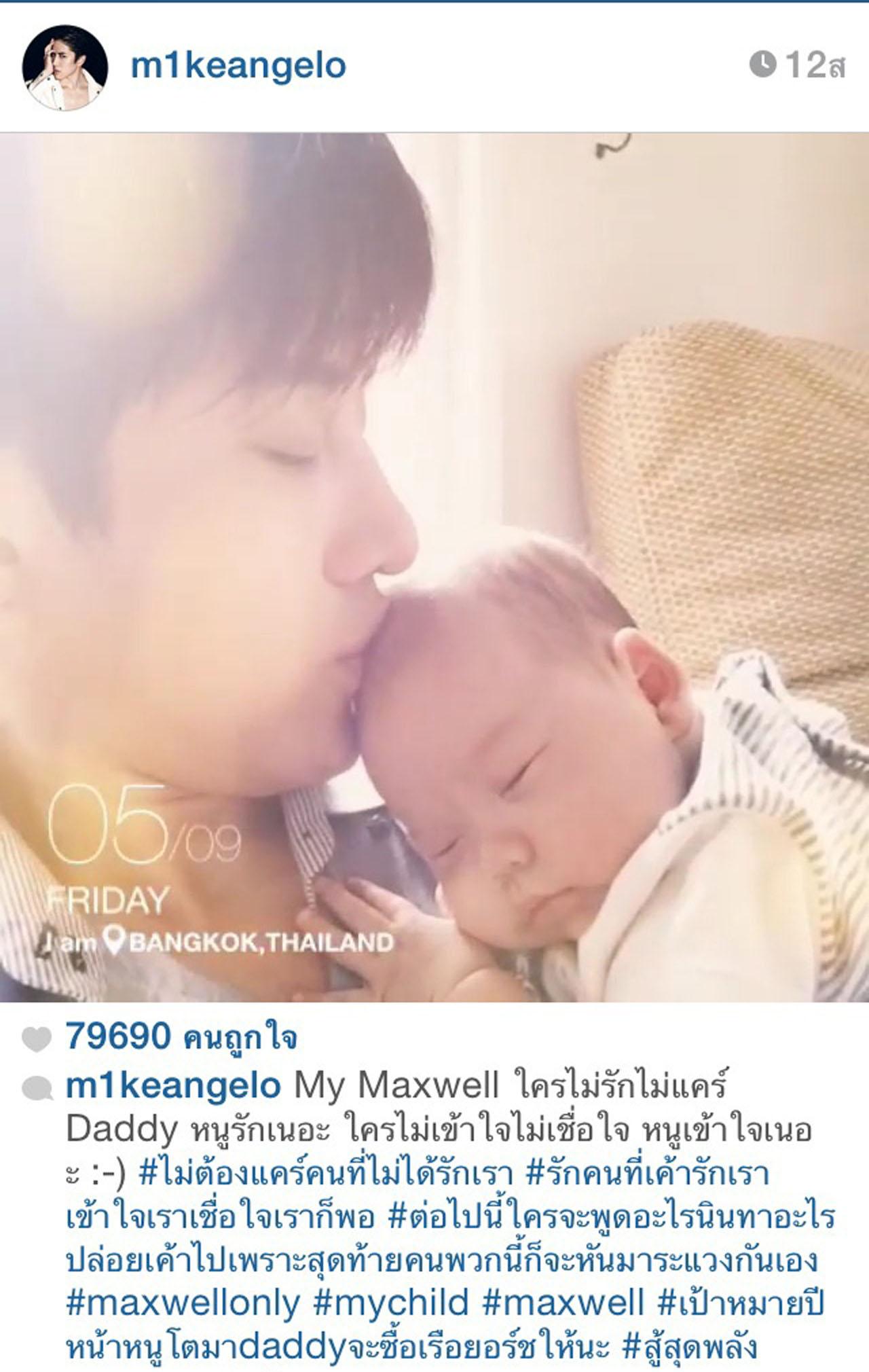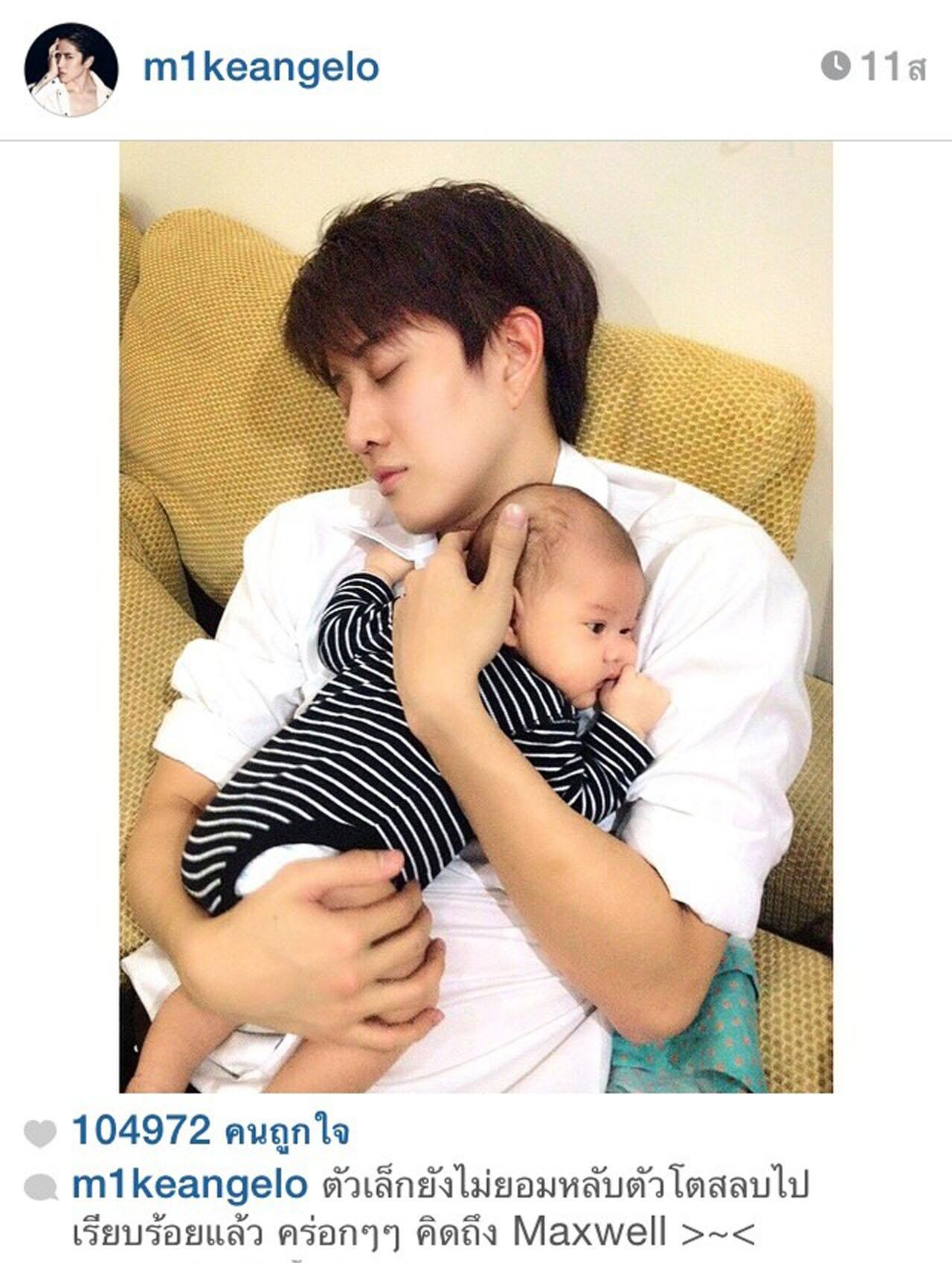 คุณพ่อหน้าใส ขวัญใจสาวๆ ที่ตอนนี้กลายเป็นคุณพ่อลูกหนึ่งเต็มตัว ดูไปก็น่าเอ็นดูทั้งคุณพ่อ-คุณลูก แต่ถึงแม้พ่อลูกคู่นี้เค้าจะไม่ได้อยู่ด้วยกันตลอด แต่ “หนุ่มไมค์” ก็มักจะแวะเวียนไปเยี่ยมเยียน “น้องแม็กซ์เวลล์” เสมอ ทำให้เราเห็นภาพน่ารักๆ ของคู่นี้ จนตามกดไลค์กันแทบไม่ทัน