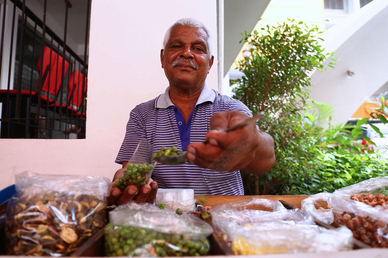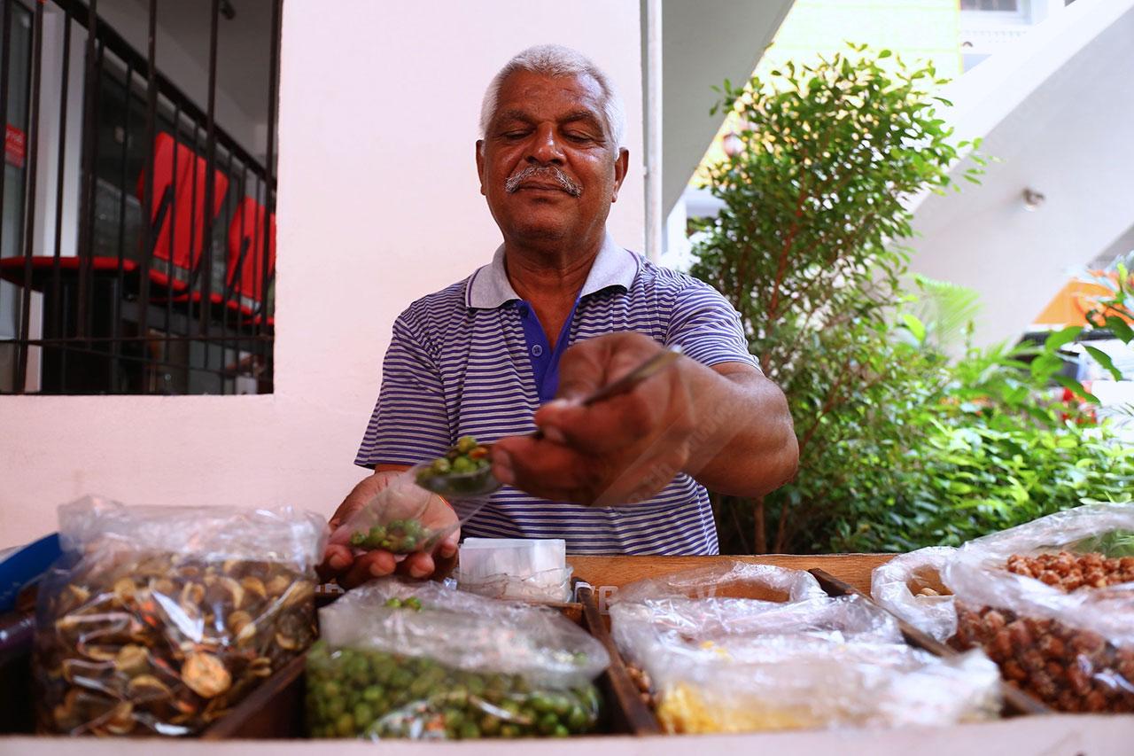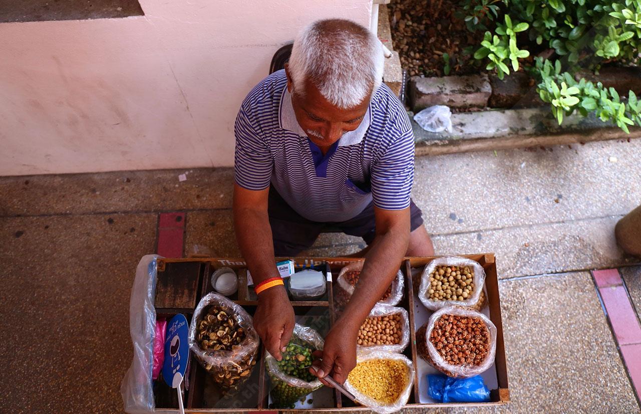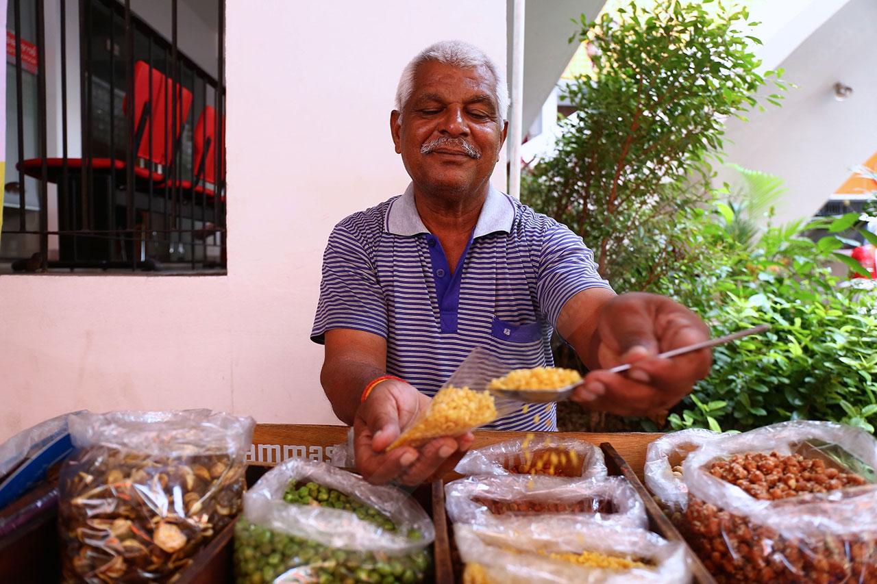 "วันนี้มีถั่วปากอ้า ถั่วลันเตา ถั่วลิสง ถั่วเคลือบน้ำตาล ถั่วลันเตาเคลือบ ถั่วเหลือง โรยเกลือนิดหน่อย ก็ขายประมาณนี้ 6-7 อย่าง แล้วแต่วัน ส่วนราคา สมัยก่อนขายถุงละ 50 สตางค์ ตอนนี้ขายถุงละ 20 บาทแล้ว ของมันแพงขึ้น วันนึงก็ขายได้ประมาณ 200-300 บาท กำไรก็ 100 กว่าบาทแหละ"