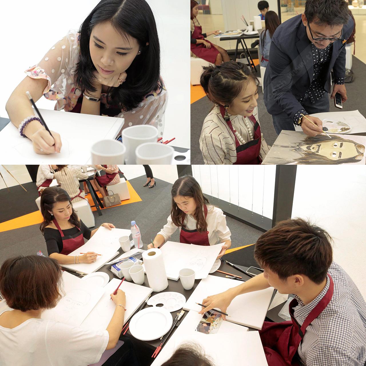 ครูปาน–สมนึก คลังนอก แนะเทคนิคการวาดภาพแก่น้องๆ อาทิ ชวัล เจียรวนนท์, ม.ล.เอวิตา ยุคล, ศิลษา จิราธิวัฒน์, ณิชพร คำเถียร และศรัณย์ภัค เพ็ญชาติ เพื่อเป็นของขวัญวันพ่อ.