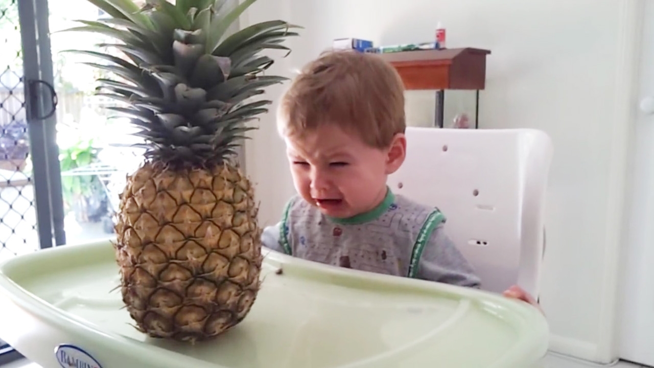 คุณพ่อที่ต้องการจะทดสอบความกลัวของลูกชาย ได้อัพโหลดคลิปวิดีโอในเว็บไซต์ยูทูบ ซึ่งเผยแพร่ภาพของหนูน้อยกำลังทำหน้าเบะ ร้องไห้แงๆ ออกอาการหวาดกลัวเมื่อได้เห็น 'สับปะรด' แต่ทันทีที่คุณพ่อหยิบสับปะรดออกไป แล้วนำผลไม้อื่นอย่างลูกแพร์และกล้วยมาวางให้แทน เจ้าหนูกลับหยุดร้องไห้ แถมดูมีทีท่าจะสนใจ อยากจะเล่นกับผลไม้ทั้ง 2 ชนิดนี้ด้วย