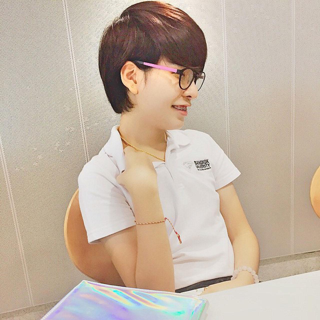"หนูก็เป็นเด็กดี เรียน และก็ยังได้ทุนเรียนที่ ม.กรุงเทพด้วย บูก้าทาเลนต์ คือทางมหาวิทยาลัยจะเฟ้นหาเด็กที่มีความสามารถ 10 คนต่อปี และให้ทุนเรียนจนถึงปี 4 หนูว่าที่หนูได้ทุน เพราะการพูด การเล่าเรื่อง และร้องเพลง หนูก็ไม่คิดว่าจะได้นะ เพราะตอนแรกเค้าให้เด็กมาเข้าค่ายเป็นร้อยคน ก่อนจะคัดเลือกให้เข้ารอบจนเหลือ 10 คน หนูเป็น 1 ในนั้น คือเป็นทุนที่ให้กับคนที่มีความสามารถ บางคนมีเฟคบ้าง เค้าก็ไม่เอาเลยค่ะ"