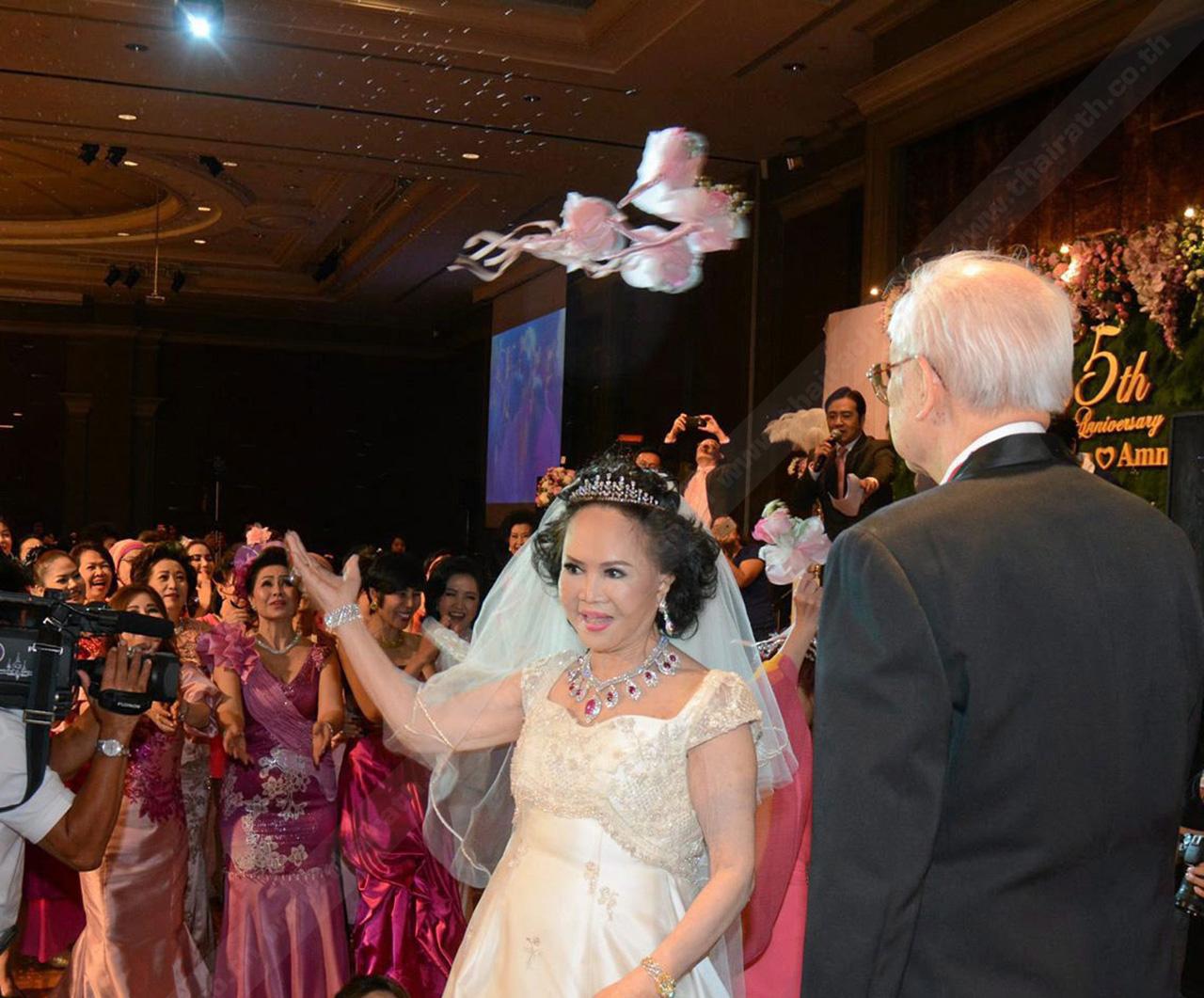 “เจ้าแม่แจ่มจันทร์” ขอสนองความฝันตัวเองด้วยการปิดห้องเมย์แฟร์ แกรนด์บอลรูม โรงแรมเดอะเบอร์เคลีย์ โฮเต็ล ประตูน้ำ จัดงานวิวาห์ใหญ่ให้สมกับที่รักกันเหนียวหนึบมากว่า 5 ทศวรรษ พร้อมจัดเต็มใส่ชุดเจ้าสาวสีขาว เดินควงแขนเจ้าบ่าว “ป๋าอำนาจ” เปิดตัวสวีตจี๋จ๋าต่อหน้าแขกเหรื่อที่มาร่วมยินดี โดยมีเสียงเพลงรักโรแมนติก “ระฆังทอง” ขับกล่อมโดยนักร้องระดับตำนาน “ดาวใจ ไพจิตร” สร้างบรรยากาศหวานซึ้งประทับใจ จากนั้นจึงถึงเวลาเปิดเผยเคล็ดลับการครองรักครองเรือนให้ยืนยาวถึง 55 ปี แล้วจูงมือกันไปตัดเค้กแต่งงาน, โยนช่อดอกไม้ให้สาวโสดผู้โชคดี และเปลี่ยนชุดใหม่ไปกระโดดโลดเต้นในอาฟเตอร์ปาร์ตี้ ครบทุกรสตามธรรมเนียมงานวิวาห์ยุคใหม่