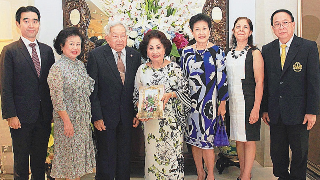ม.ร.ว.เทพกมล-คุณหญิงขวัญตา เทวกุล, ท่านทูตอาร์เจนตินา อานา มาเรีย รามิเซ, ท่านผู้หญิงวราพร ปราโมชฯ, ศ.นพ.วินิต พัวประดิษฐ์, อัศวิน เตชะเจริญวิกุล ร่วมยินดีกับ กมลา สุโกศล (กลาง).