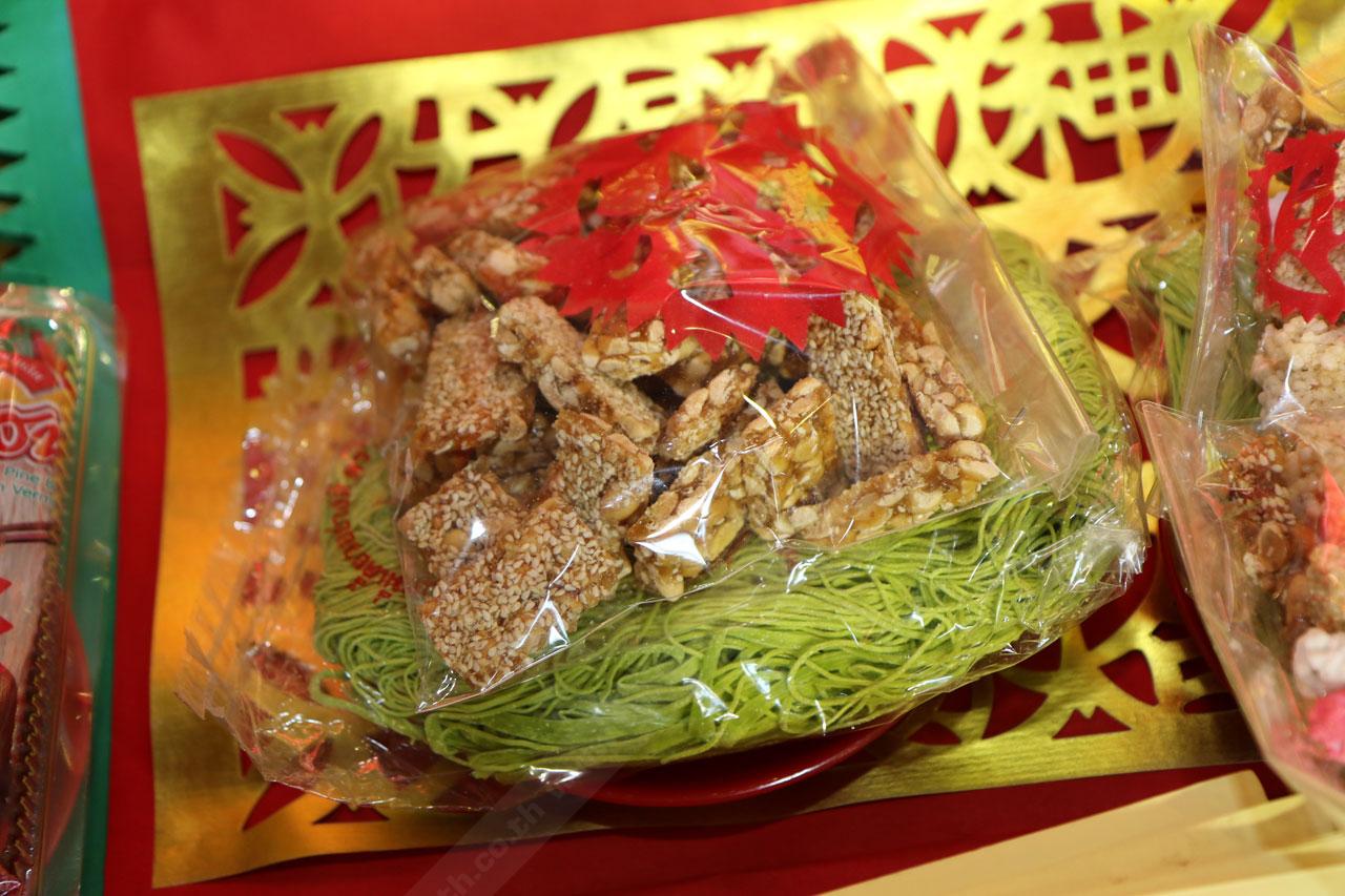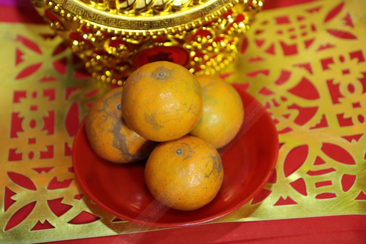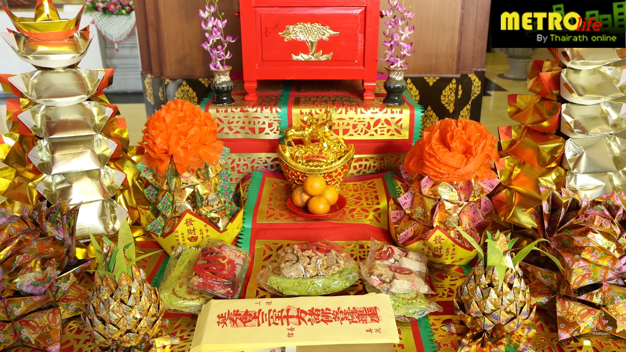 ไหว้เสร็จไปรับของมงคลกลับไปรับประทานเพื่อเสริมดวง ได้แก่ ส้ม 4 ผล เพื่อความเป็นสิริมงคล, บะหมี่ เพื่ออายุยืนยาว, ถั่วตัด เปรียบเหมือนทองแท่งเพื่อความมั่งมีร่ำรวย