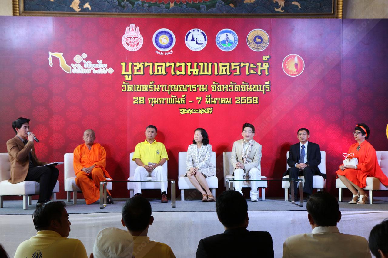 งาน "บูชาดาวนพเคราะห์" จะจัดขึ้นระหว่างวันที่ 28 ก.พ. - 7 มี.ค. 2558 ณ วัดเขตต์นาบุญญาราม อ.เมือง จ.จันทบุรี โดยวันที่ 28 ก.พ. 2558 เชิญชมขบวนบูชาดาวนพเคราะห์ มังกร-สิงโต เองกง อันยิ่งใหญ่ตระการตา ที่สะท้อนความเชื่ออันศักดิ์สิทธิ์ของเทพเจ้าแต่ละองค์ พร้อมชมความงดงามของประติมากรรมโคมไฟ อาทิ โคมไฟมังกรยาวกว่า 12 เมตร ที่ชาวจีนและชาวเวียดนามเชื่อว่าเป็นสัตว์วิเศษในตำนานที่ทรงพลังและศักดิ์สิทธิ์แห่งฟ้าและดิน เป็นสัญลักษณ์ที่นำมาซึ่งความสุขและความอุดมสมบูรณ์ของบ้านเมือง และประติมากรรมโคมไฟลูกมังกร 9 ตัว ที่สะท้อนถึงความเชื่อเกี่ยวกับคุณธรรมขั้นพื้นฐานที่สามารถนำมาเป็นคำสอนเตือนใจให้ลูกหลานได้เป็นอย่างดี นอกจากนี้ยังจะได้ร่วมบูชาดาวนพเคราะห์ประจำวันเกิด ทำพิธีแก้ชง สะเดาะห์เคราะห์เพื่อเสริมสิริมงคลให้แก่ชีวิตให้ราบรื่นตลอดปี 2558 ผู้สนใจสามารถเดินทางมาร่วมงานได้ฟรี ไม่มีค่าใช้จ่าย สอบถามข้อมูลเพิ่มเติมได้ที่ โทร. 1672 เบอร์เดียวเที่ยวทั่วไทย