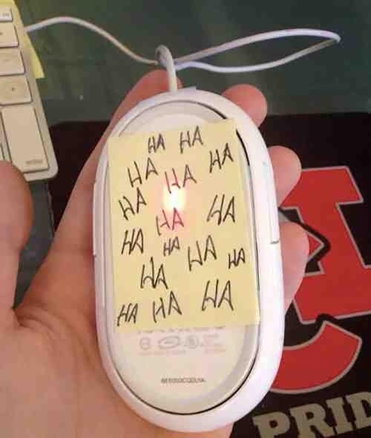 4. นำโพสต์อิทเขียนข้อความฮาๆ ปิดเซ็นเซอร์ไม่ให้เม้าส์ขยับได้ รับรองเพื่อนมีเคือง