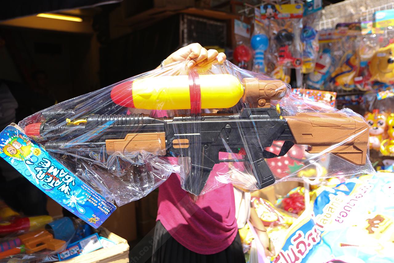 ก็ 1 ปีมีแค่ 3 วัน ก็ต้องเล่นน้ำกันให้เต็มที่หน่อย แต่จะเดินถือขันไปสาดน้ำหนุ่มๆ ก็ออกจะโบร้าณโบราณไปนิดนึง ไม่ชิคเอาซะเลย ถ้างั้นก็ต้องมีอุปกรณ์เล่นน้ำเท่ๆ มาประดับกายกันหน่อยแล้ว ซึ่งก็คงหนีไม่พ้น ปืนฉีดน้ำ หลากสีหลายรุ่น ที่แต่ละปีก็มีการดีไซน์รูปลักษณ์แปลกใหม่ออกมาให้เลือกซื้อกันทุกปี