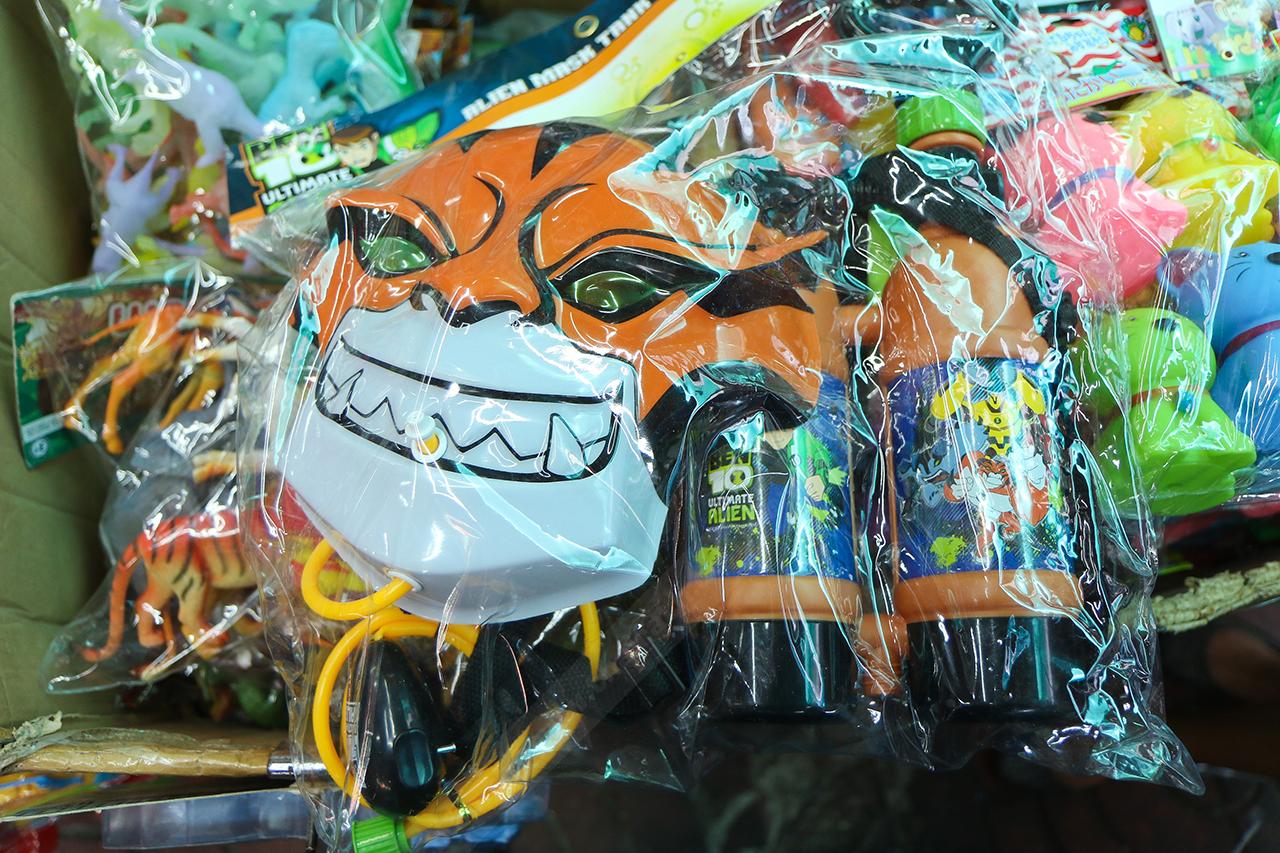 เก๋จริงๆ ปืนรุ่นนี้ รูปทรงเหมือนกระเป๋าปืนฉีดน้ำแบบสะพาย แต่มันแปลกตรงที่ไม่มีปืน แต่เป็นหน้ากากแทน วิธีใช้งานก็แค่ใส่หน้ากากเวลาเล่นน้ำ จากนั้นก็กดตัวยิงน้ำ แค่นี้น้ำจะพุ่งออกจากปากของหน้ากากที่เราใส่ เท่สุดๆ ไปเลย แถมยังป้องกันน้ำจากคนอื่นที่ฉีดมาใส่เราได้ด้วย แบบนี้ไม่มีไม่ได้แล้ว สนนราคาอยู่ที่ 250-300 บาท ช้าหมดอดมีไว้โชว์นะจ๊ะ