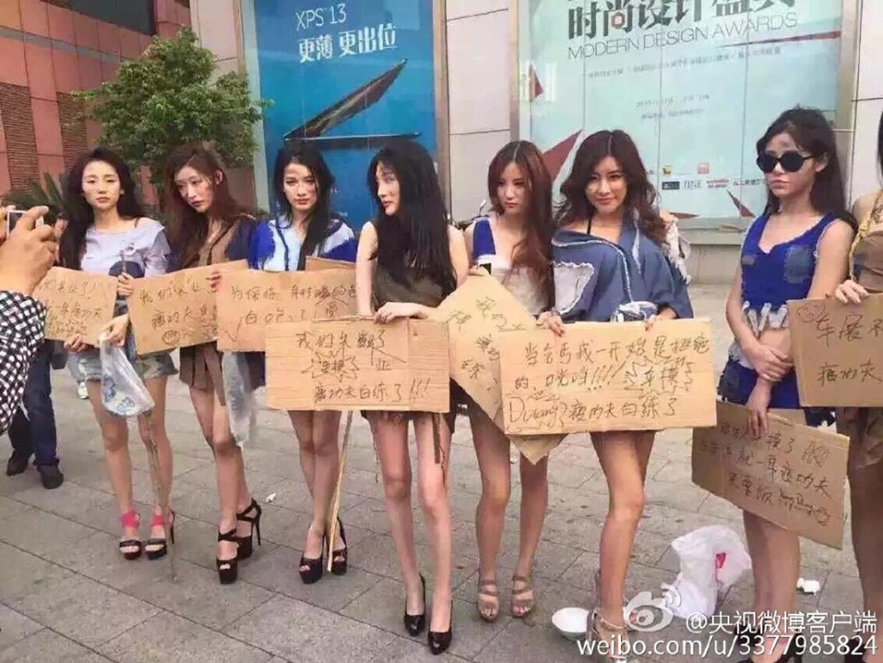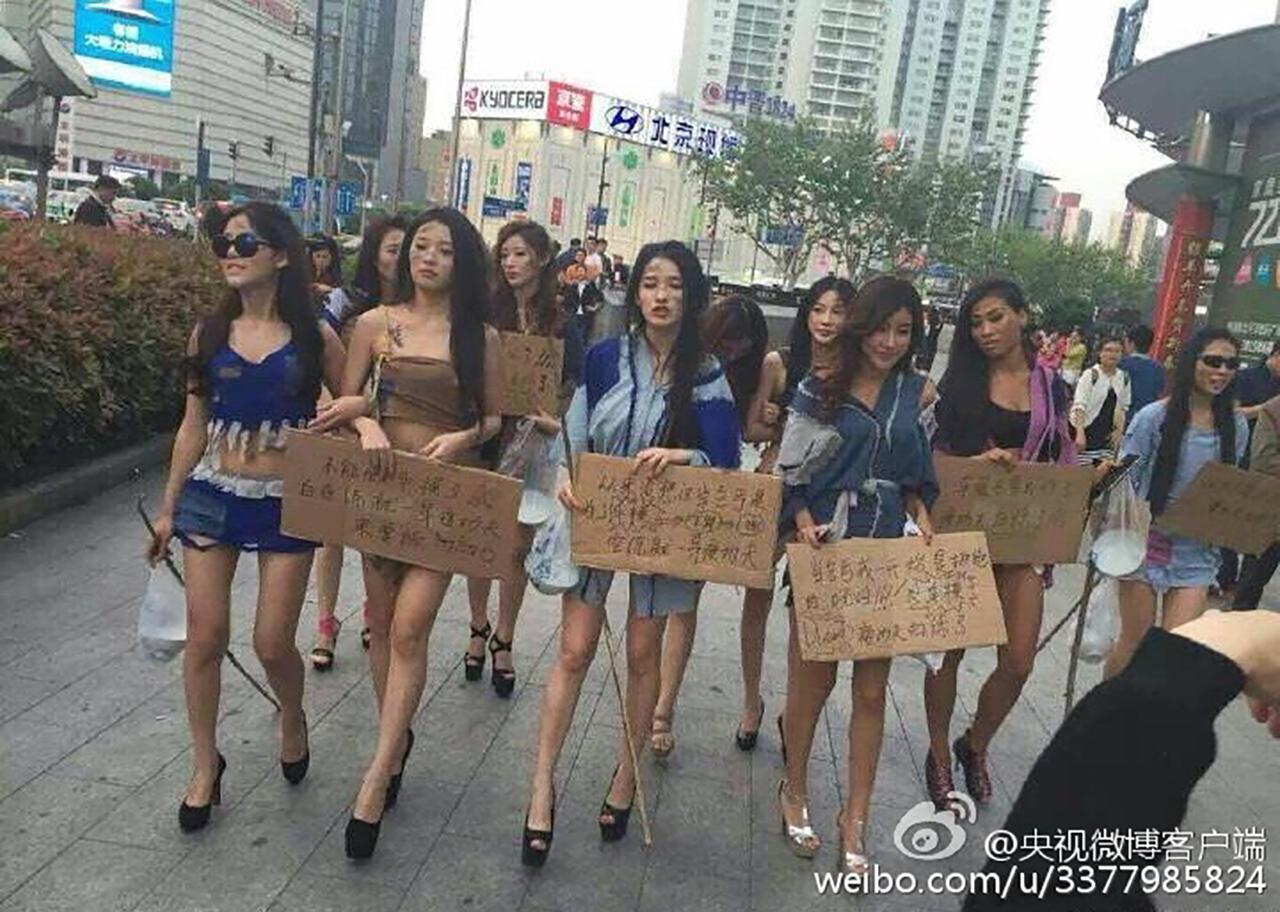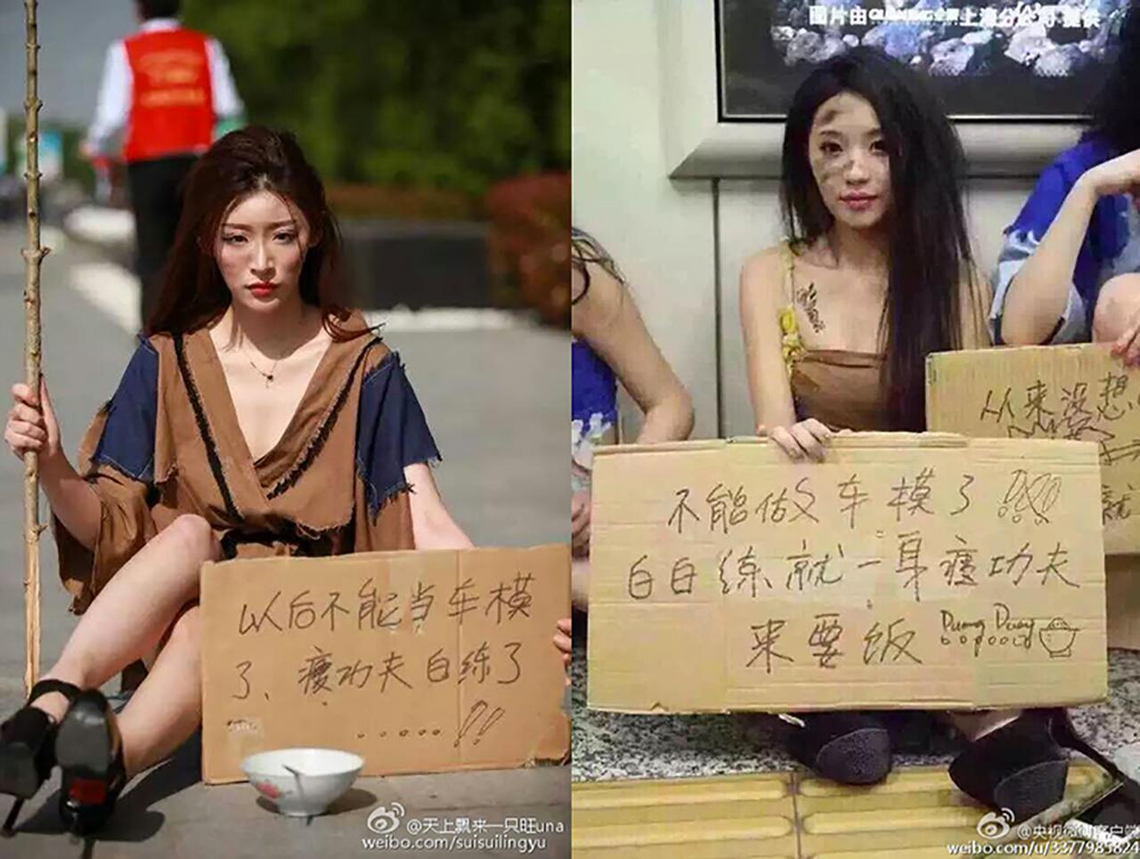 พริตตี้จีนสุดทนแต่งตัวเป็นขอทานใส่เสื้อผ้าเลอะเทอะขาดวิ่น พร้อมถือป้ายที่เขียนไว้ว่า "เราต้องการทำมาหากินต่อไป คำกดดันประณามด่าของรัฐบาล เรื่องการแต่งตัวโป๊มันไร้สาระ" เพื่อประท้วงรัฐบาลที่สั่งห้ามพริตตี้โชว์หวิวในงาน Shanghai Auto Show จนทำให้พวกเธอตกงาน งานนี้มีทั้งฝ่ายที่เห็นใจพริตตี้และมีทั้งฝ่ายที่เห็นด้วยกับรัฐบาลที่สั่งแบนเพราะคนจะได้โฟกัสที่รถไม่ใช่ที่พริตตี้ ไทยรัฐออนไลน์ นำภาพมาให้ได้ชมกัน...