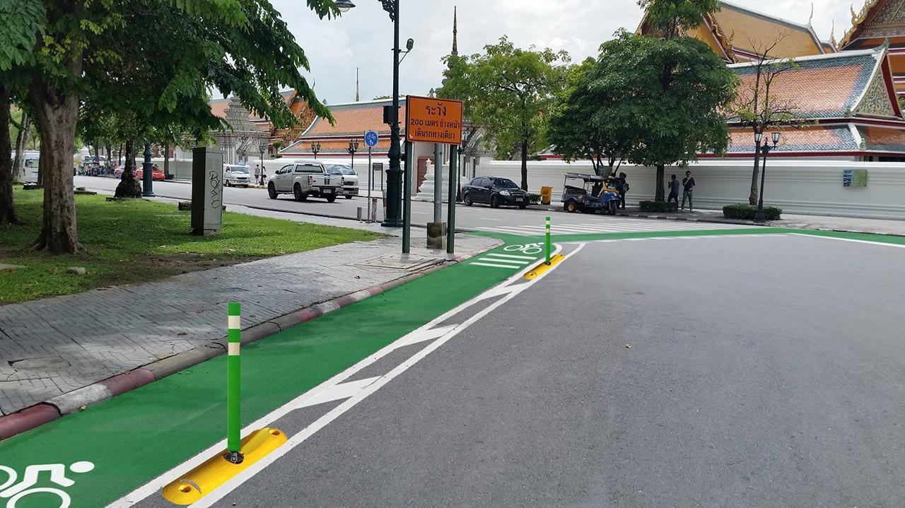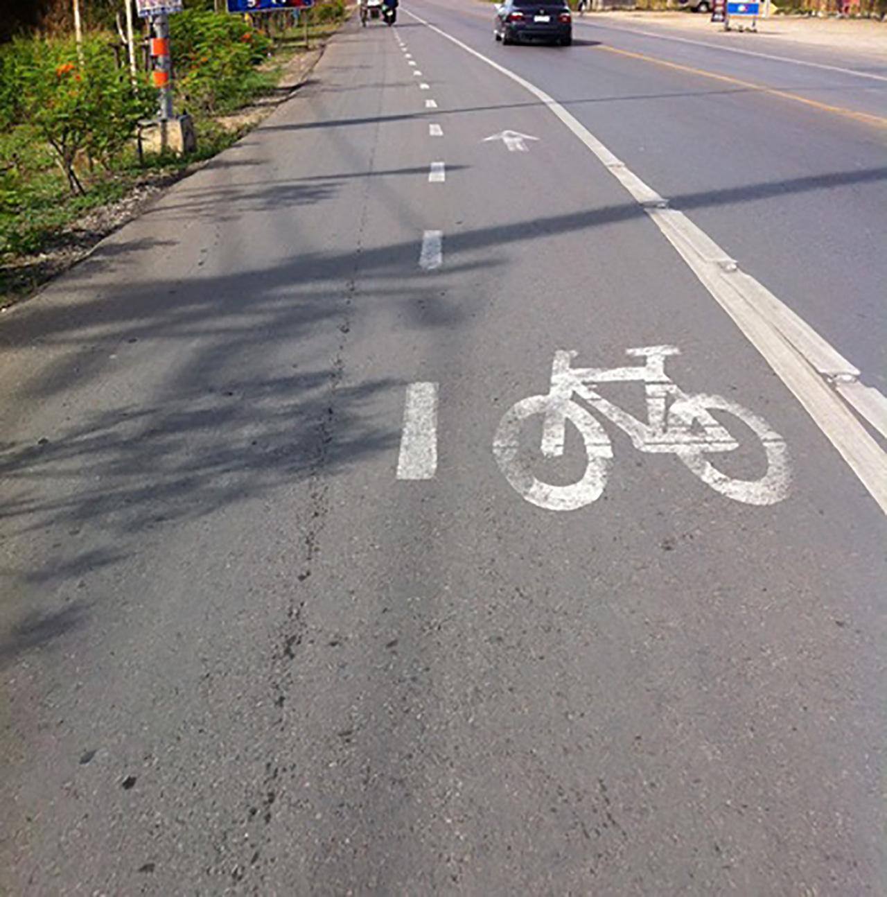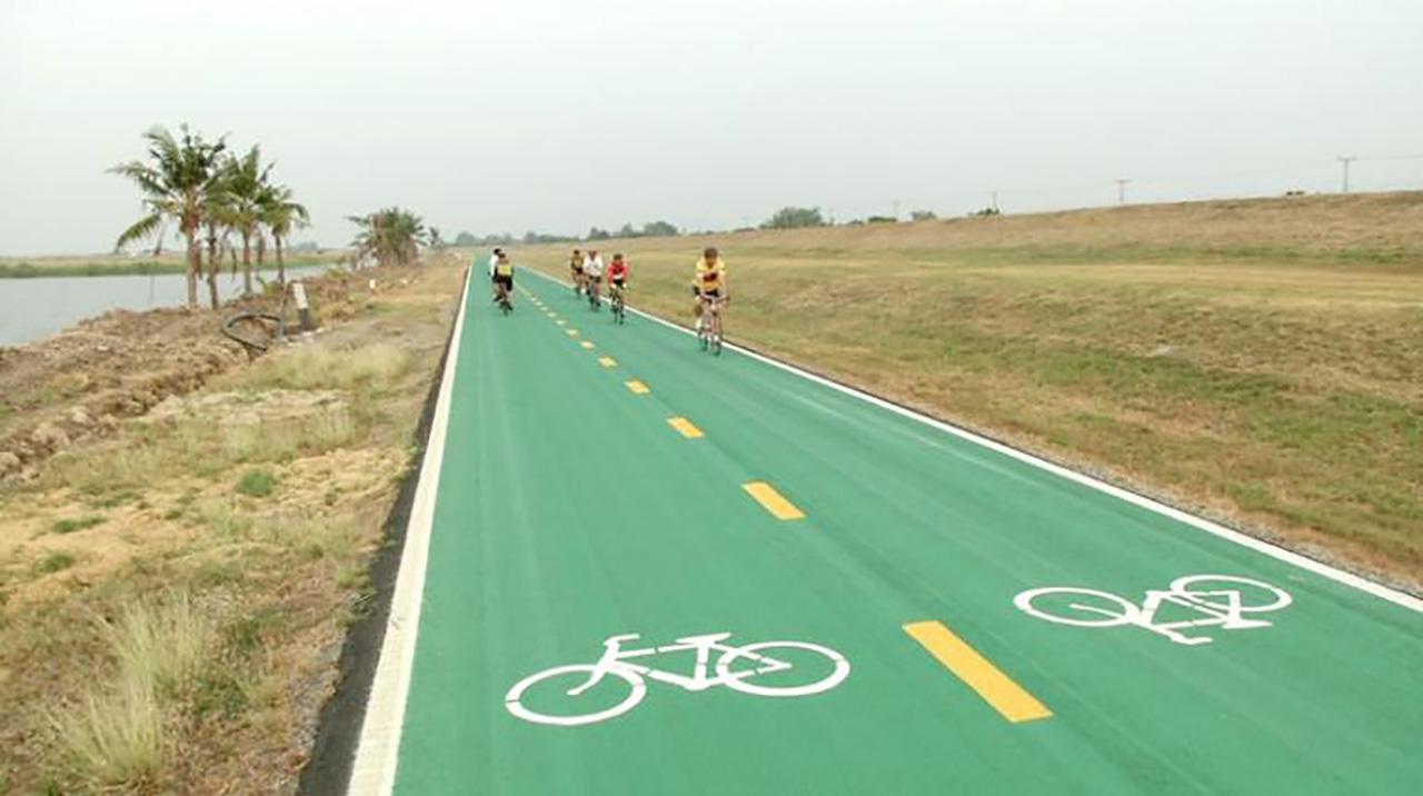 ที่นี่มีเส้นปั่นจักรยานที่มีเลนปลอดภัยให้นักปั่นโดยเฉพาะ คือ ไม่ได้รวมอยู่ในทางหลักที่เป็นทางรถยนต์วิ่ง แต่เป็นครั้งแรกในเมืองไทยที่มีเลนแยกออกมาอย่างชัดเจนแบบนี้