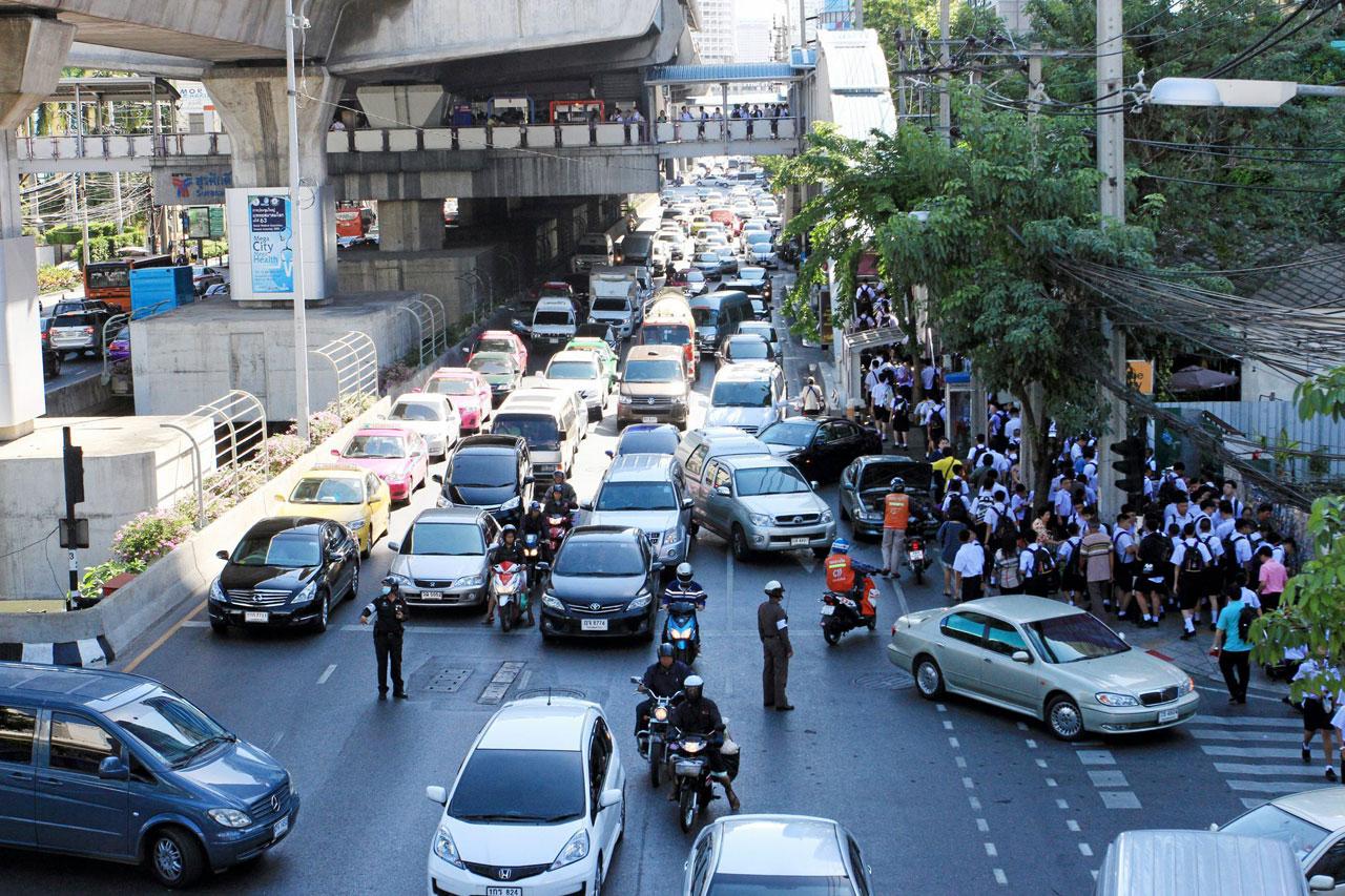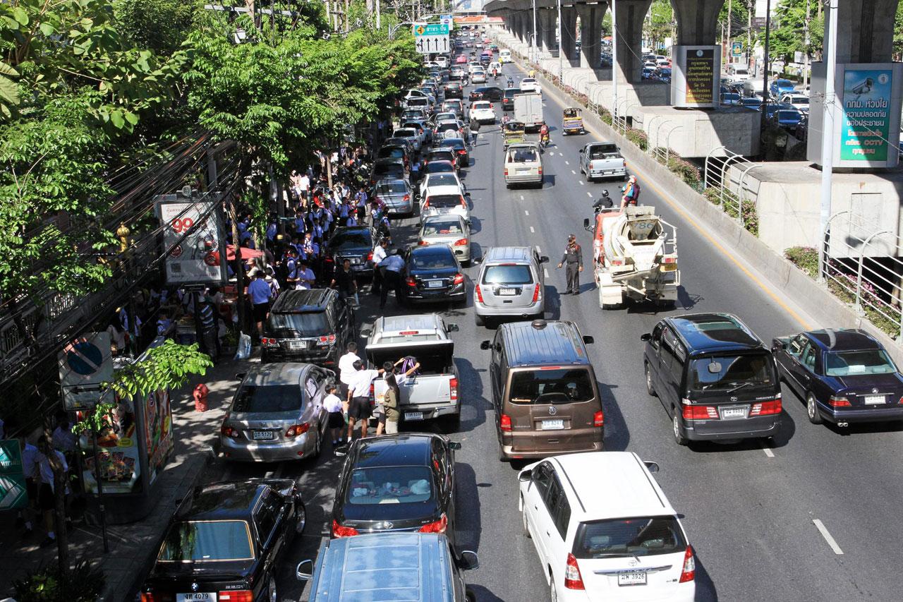อันนี้ก็สุดๆ ทั้งคนทำงาน ทั้งเด็กนักเรียน ปะทะกันอยู่บนถนน ติดยาวเหยียด ย่านอโศก ได้แก่ โรงเรียนมาแตร์เดอี โรงเรียนวัฒนาวิทยาลัย ที่ส่งผลไปยังถนนเพลินจิต สุขุมวิท ชิดลม เพชรบุรี หลังสวน ซ.ร่วมฤดี ราชประสงค์ ต่อถึงอโศกขาเข้า ดินแดง เพชรบุรี และสุขุมวิทขาเข้า เลยไปแยกสุขุมวิท 19 อโศก-สุขุมวิท และอโศก-วัฒนา