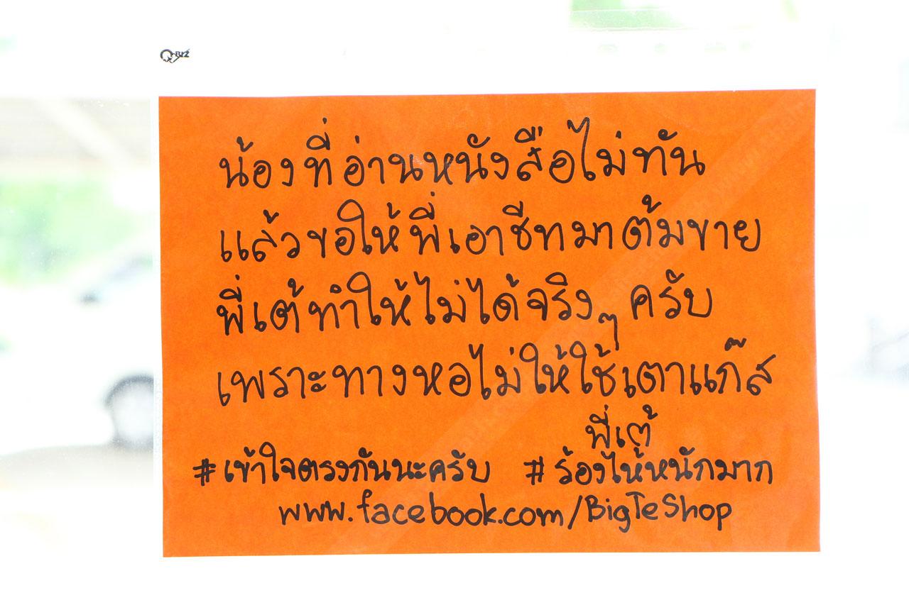 สิ่งที่ผมทำ คือการเขียนป้ายข้อความ แปะไว้ที่สินค้าภายในร้าน เพื่อสื่อสารกับลูกค้า ซึ่งหมายถึงน้องๆ นักศึกษาเป็นหลัก เอาจริงๆ ผมชอบพูดคุยกับคน ชอบสร้างความสัมพันธ์ที่ดีกับคนอื่น โดยเฉพาะกับน้องๆ ที่เข้ามาซื้อของภายในร้าน แต่มีอยู่ช่วงเวลานึง ที่ผมต้องออกไปซื้อของ จึงให้คนอื่นมาขายแทน ผมเลยไม่ได้พูดคุยกับน้องๆ จึงได้แต่เขียนป้ายไว้ ทีนี้พอผมเขียนป้ายข้อความไว้ น้องๆ ที่มาไม่เจอ ก็บอกว่าอยากเจอ อยากคุยกับพี่เต้ แต่ทำไงได้ เพราะผมต้องออกไปซื้อของ จึงต้องติดป้ายข้อความไว้ที่สินค้าแทน ระยะหลังผมเลยมาเปิดในโซเชียลด้วย มีทั้งไลน์ เฟซบุ๊ก อินสตาแกรม ที่ผมช่วยกันตอบกับแฟน บางทีก็คุยกับน้องๆ เอาฮากันไป
