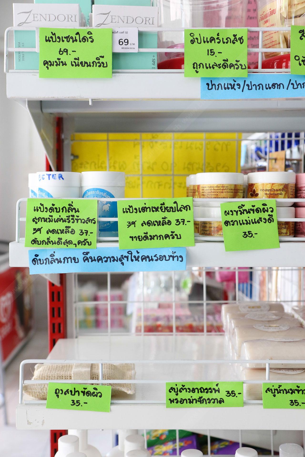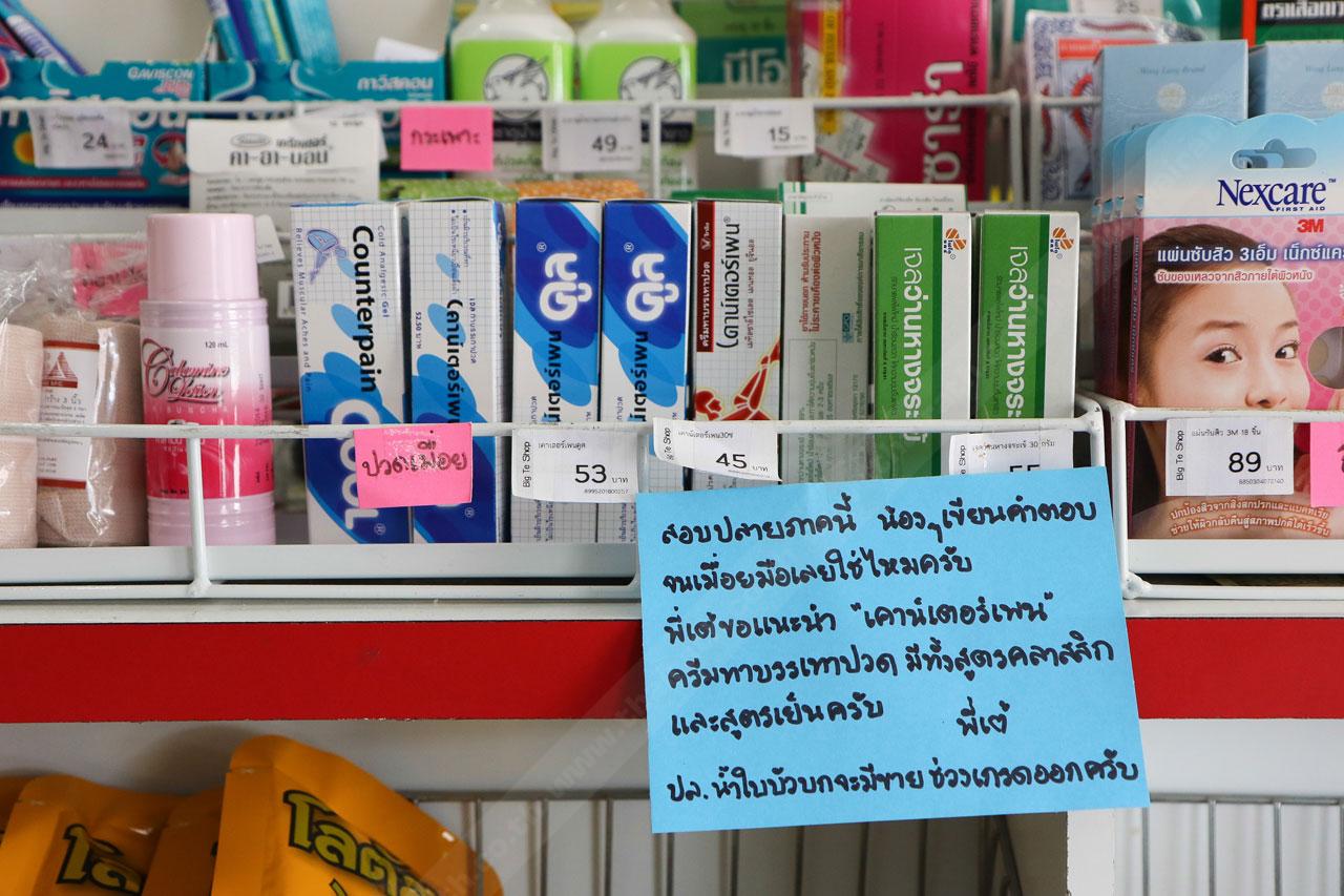 สินค้าภายในร้านผมจะมีอยู่ 4 หลัก คือ 1. สินค้าตามความต้องการของน้องๆ นักศึกษา ที่ได้มาจากการพูดคุยเสียเป็นส่วนใหญ่ ซึ่งก็เป็นของที่คิดว่าน้องๆ ต้องใช้ในแต่ละวัน 2. สินค้าแปลก หาที่อื่นไม่ได้ อย่าง แป้งเต่าเหยียบโลก แป้งลูกหมีเล่นรีรีข้าวสาร ฯลฯ 3. สินค้าที่ผลิตเอง เช่น แซนด์วิช เบอร์เกอร์ เบเกอรี่ เป็นของร้านเราแพ็กขึ้นมาเอง คือ รสชาติ หน้าตาแบบนี้ มีที่ร้านผมที่เดียว 4. สินค้าที่รับมาจากนักศึกษา ผมชอบสนับสนุนน้องๆ ให้ดำเนินธุรกิจในอนาคตได้ และเรายังสร้างความสัมพันธ์ที่ดีกับน้องๆ ด้วย คือถ้าเด็กมีรายได้ เงินก็กลับเข้ามา