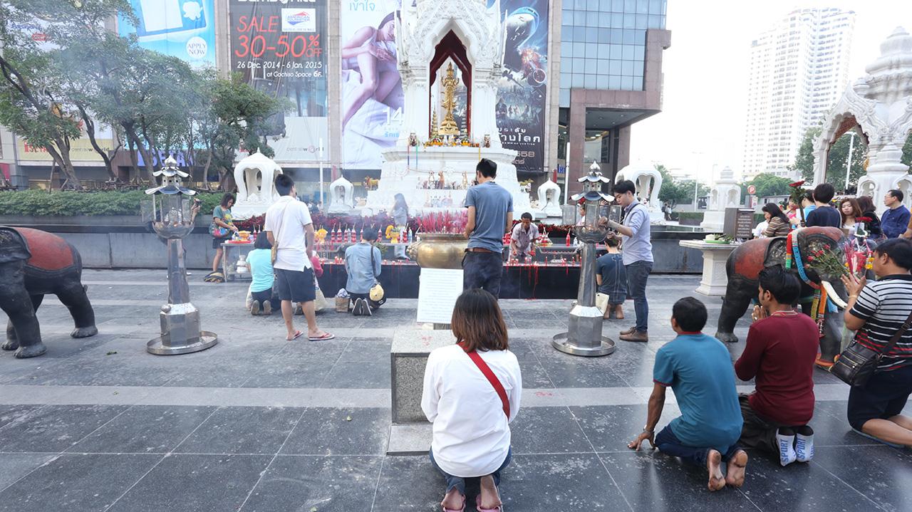 การเดินทางไปกราบไหว้ขอพรกับเทพเจ้าแห่งความรัก ก็เป็นอีกหนึ่งวิธีที่ได้รับความนิยม ถ้าในประเทศไทยส่วนใหญ่คนโสดหรือคู่รัก มักจะเดินทางไปสักการะ พระตรีมูรติ ที่หน้าห้างเซ็นทรัลเวิลด์ โดยเชื่อกันว่าพระตรีมูรติเป็นเทพที่มีพลังอันยิ่งใหญ่ เป็นเทพผู้สร้าง ผู้รักษา และผู้ทำลาย ซึ่งพลังทั้งสามนี้ทำให้ท่านมีความศักดิ์สิทธิ์มาก หากไปกราบไหว้บูชาจะได้รับพรด้านความรัก