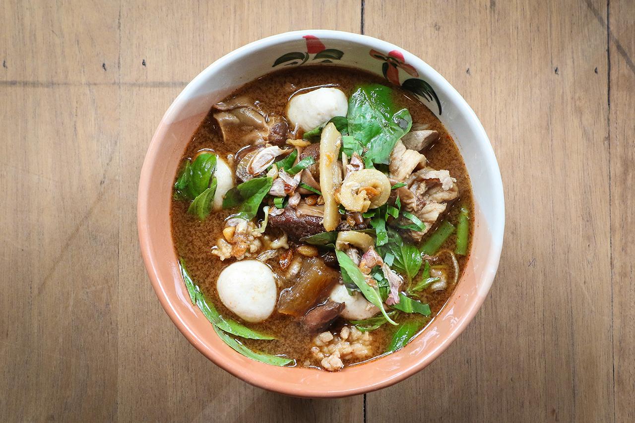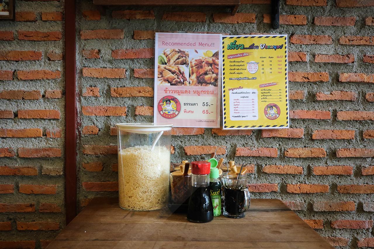 ร้านเราขายหลายอย่าง แต่หลักๆ แล้วคือ ก๋วยเตี๋ยว ซึ่งในส่วนของเมนูนี้ เราก็มีความหลากหลายเป็นอย่างมาก เราต้องการเพิ่มความแตกต่างลงไป คือ เราทำทั้งก๋วยเตี๋ยวหมูน้ำตก ก๋วยเตี๋ยวหมูต้มยำ ก๋วยเตี๋ยวต้มยำทะเล ก๋วยเตี๋ยวหมูตุ๋น รวมถึงเกาเหลาหมูตุ๋นหม้อไฟ สำหรับที่ขึ้นชื่อขายดี คือ ก๋วยเตี๋ยวน้ำตกและก๋วยเตี๋ยวต้มยำ
