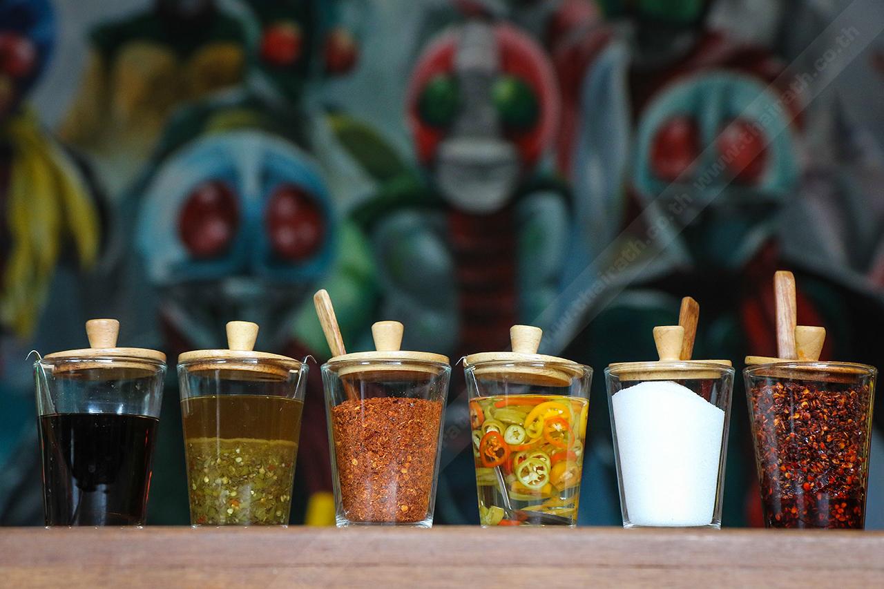 ร้านเราจะคัดสรรมาเป็นอย่างดี ลูกชิ้นร้านไหนดัง ร้านไหนอร่อย เราจะไปซื้อมา เพื่อมาสร้างสรรค์เป็นเมนูที่มีแต่ความอร่อย ไม่ว่าจะกุ้ง หมึก รวมไปถึงเส้นก๋วยเตี๋ยวด้วย นอกจากนี้ยังมีพวกเครื่องปรุง ทั้งพริกป่นคั่ว น้ำส้ม เราจะปรุงขึ้นมาใหม่ๆ แก้วที่ใส่เครื่องปรุง จะต้องเปลี่ยนแก้วและทำความสะอาดทุกวัน