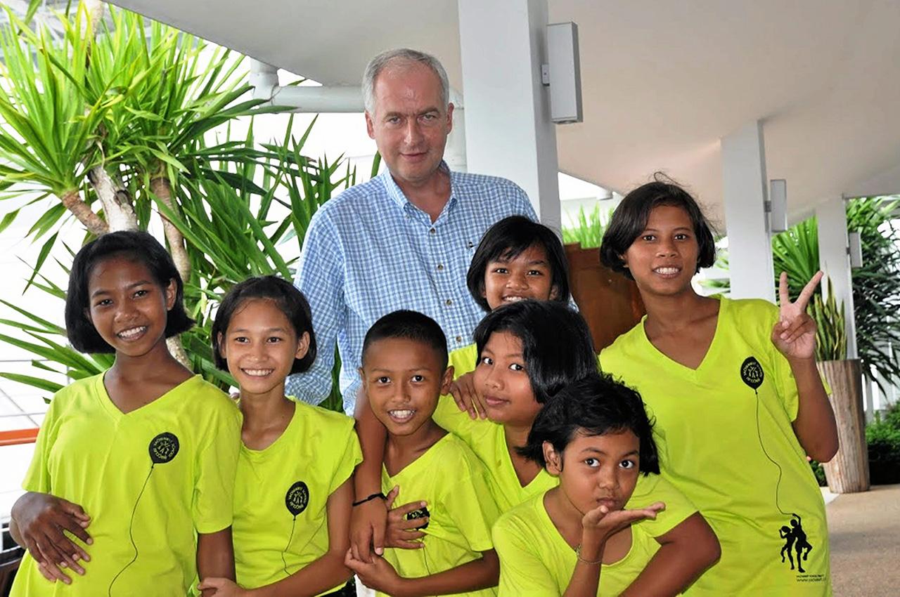 ในระหว่างทำงานเป็นแชร์แมนโรงเรียนนานาชาติเบอร์ลิน ศาสตราจารย์ชาวเยอรมัน ที่เป็นผู้ช่วยประธานโรงเรียนนานาชาติฯ ได้ย้ายมาสร้างโรงเรียนเด็กกำพร้า ที่จังหวัดเชียงใหม่ เขาต้องการความช่วยเหลือด้านการหาทุนสร้างโรงเรียน ผมและลูกสาวทั้งสอง ซึ่งตอนนั้น อายุ 12 และ 13 ปี จึงเดินทางมาที่เชียงใหม่ เพื่อสำรวจดูว่าจะช่วยเหลืออะไรได้บ้าง พวกเรามาอยู่เชียงใหม่แค่ 2 วัน ก็เกิดเหตุการณ์ภัยพิบัติสึนามิทางภาคใต้ของเมืองไทย ผมจึงเดินทางไปที่บ้านน้ำเค็ม จังหวัดพังงา นี่เป็นครั้งแรกที่เดินทางมาประเทศไทย ตอนไปถึงที่นั่น คนบ้านน้ำเค็มและคนไทยมองผมว่าเป็นฝรั่งหัวแดง จะช่วยเหลือจริงจังอะไร คงทำเป็นพิธีแล้วก็ทิ้งไปเหมือนคนอื่นๆ หรือไม่ก็มาช่วยเพราะมีจุดประสงค์แอบแฝงจะหลอกคนไทย ผมเลยฮึดสู้ เพราะอยากพิสูจน์ตัวเองให้คนไทยเห็นถึงความตั้งใจจริง ผมพร้อมที่จะช่วยเหลือและพัฒนาชุมชนนี้อย่างจริงจัง โดยเฉพาะเด็กๆกำพร้า ที่ต้องสูญเสียพ่อแม่และญาติพี่น้องจากเหตุการณ์สึนามิ ตรงนี้เองเป็นจุดเริ่มต้นให้ผมตัดสินใจสร้างโรงเรียนขึ้นใหม่ เพื่อช่วยเหลือเด็กๆเหยื่อสึนามิให้มีการศึกษาและมีที่พัก ช่วงปี 2548 ผมเดินทางไปมาระหว่างไทยกับเยอรมนี 12-13 ครั้ง เพื่อหาทุนช่วยเหลือสำหรับการสร้างโรงเรียนแห่งนี้ ในที่สุดก็ตกลงสร้างโรงเรียนในหมู่บ้านกะปง เป็นเขตชนบทเงียบสงบ รายล้อมด้วยป่าเขียวสมบูรณ์ดี ตั้งอยู่ห่างจากทะเล 40 นาที ผมได้เพื่อนสถาปนิกชาวอเมริกันช่วยออกแบบ และได้รับความช่วยเหลือจาก “คุณหญิงกษมา วรวรรณ ณ อยุธยา” ทำให้สร้างโรงเรียนสำเร็จ ตั้งชื่อว่าโรงเรียนเยาววิทย์ ได้รับพระกรุณาธิคุณจากสมเด็จพระเทพรัตนราชสุดาฯ เสด็จฯเปิดโรงเรียน ในเดือน เม.ย.2549 มีนักเรียนรุ่นแรก 80 คน ปัจจุบัน มีนักเรียน 126 คน สอนตั้งแต่ชั้นอนุบาล ถึง ป.6