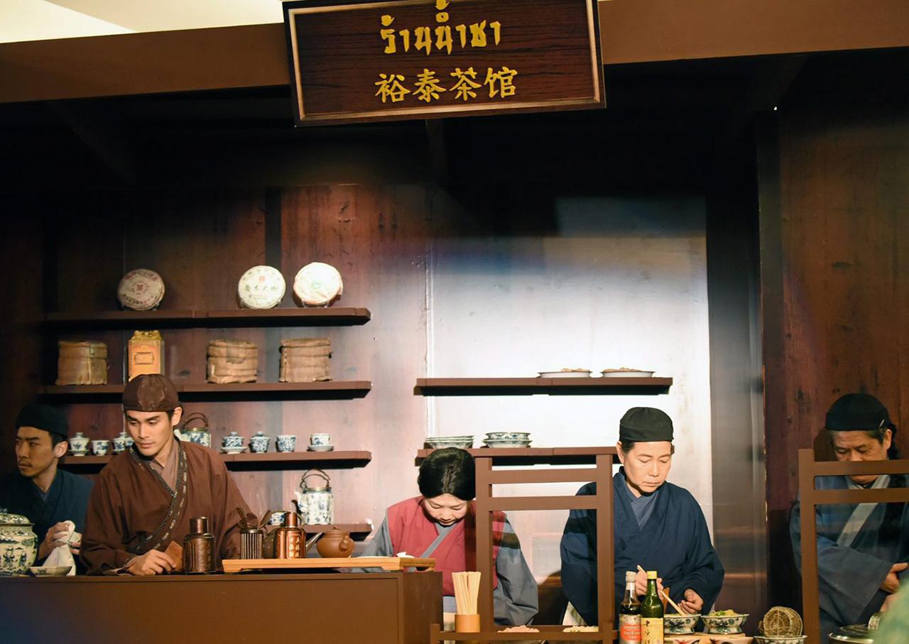 นอกจากนี้ ยังได้ทอดพระเนตรนิทรรศการ “รัตนราชเรียงร้อย รัตนสารจีนวิทยา” และ “ร้านน้ำชาในวิถีชีวิตชาวจีน” เป็นนิทรรศการรวบรวมพระปรีชาสามารถด้านอักษรศาสตร์ในสมเด็จพระ เทพรัตนราชสุดาฯ ผ่านพระราชนิพนธ์แปลวรรณกรรมจีนเล่มใหม่ เรื่อง “ร้านน้ำชา ละครพูด 3 องก์” ซึ่งทำให้เกิดการเรียนรู้วัฒนธรรมและประวัติศาสตร์การดื่มชาของชาวจีนในร้านน้ำชา ซึ่งได้มีการจำลองบรรยากาศร้านน้ำชาเก่าแก่นาม “ยู่ไท่” ในกรุงปักกิ่ง เพื่อให้เห็นถึงวิถีชีวิตชาวจีนในยุคนั้น พร้อมการแสดงเรื่องย่อจากนักแสดงกิตติมศักดิ์ นำโดยสุเวทย์ ธีรวชิรกุล ซีอีโอเอ็มบีเค กรุ๊ป, ศาสตราจารย์พิเศษ กิติพงศ์ อุรพีพัฒนพงศ์ ผู้บริหารสยามพิวรรธน์, วิศิษฎ์ ลิ้มประนะ ประธานบริษัทง่วนสูน, วัลลิยา ปังศรีวงศ์, กฤตพล ฉันทฤทธานนท์ ฯลฯ.