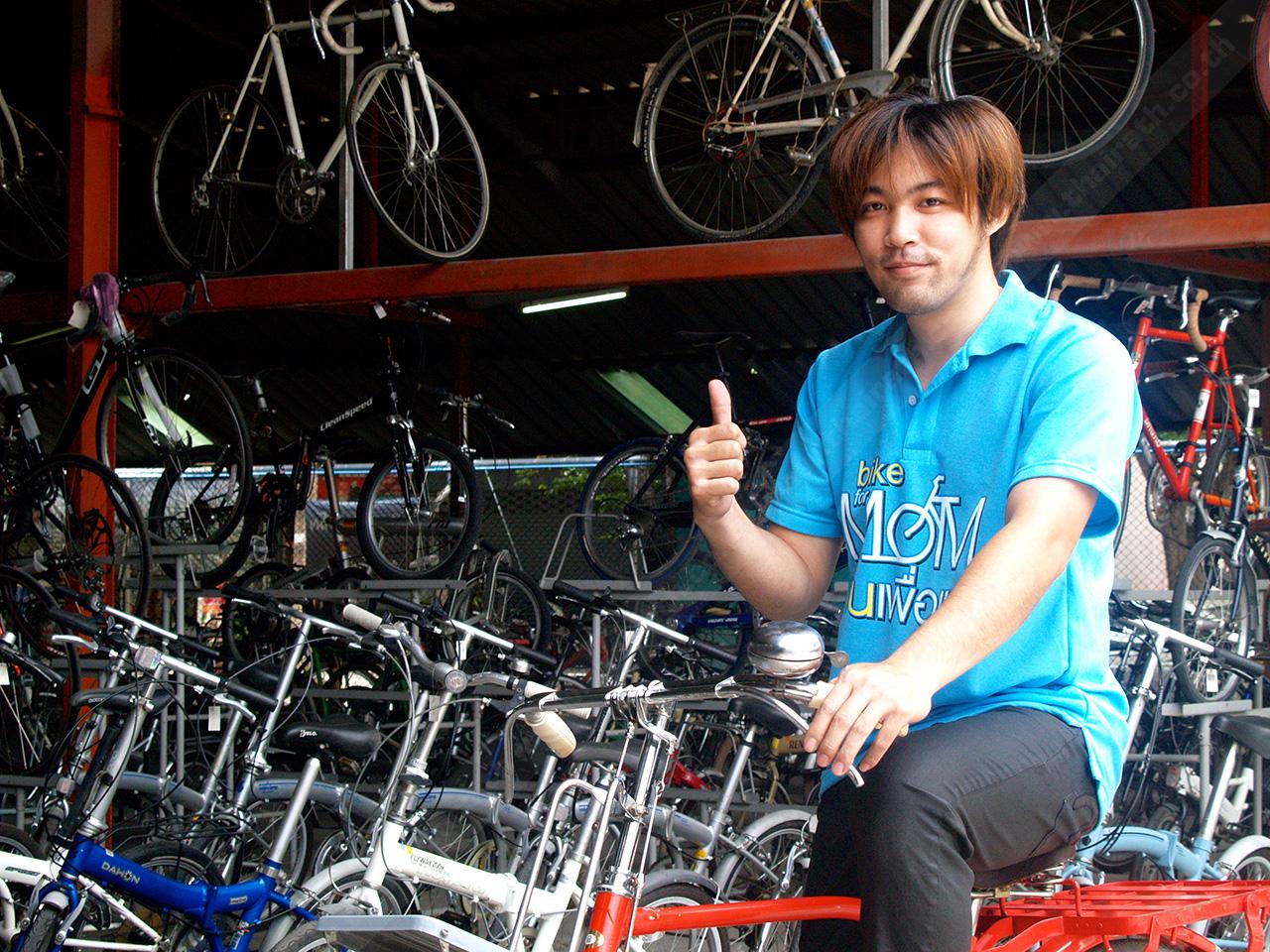 แรกเริ่มเลย คือ ผมเพิ่งกลับมาจากไปดูงานที่ญี่ปุ่น ตอนนั้นพอดีเพื่อนของพ่อ เขามาฝากจอดจักรยานตรงนี้ ฝากไว้ประมาณ 1,000 คัน แล้วเพื่อนเดือดร้อนเรื่องเงิน พ่อเลยอยากช่วย ก็รับซื้อมา ก็ไม่คิดว่าจะเอามาทำเป็นธุรกิจอะไรหรอก คือกะจะช่วยเพื่อนเฉยๆ ผมกลับมาพอดี พ่อก็เลยให้ผมมาช่วยทำ