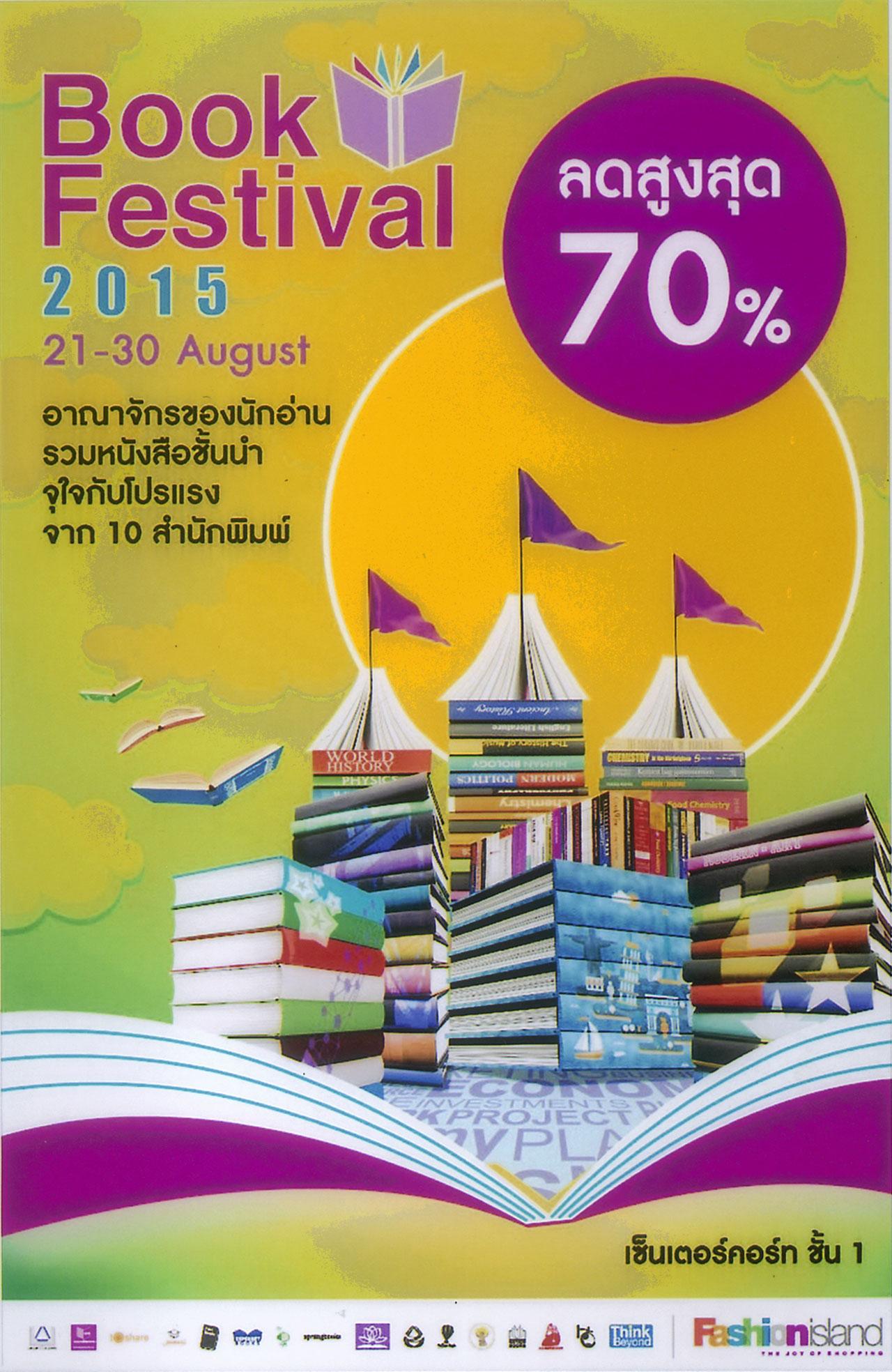 ศูนย์การค้าแฟชั่นไอส์แลนด์ จัดงาน “Book Festival 2015” คัดสรรหนังสือน่าอ่านและกิจกรรม “นักเขียนพบนักอ่าน” พูดคุยกับนักเขียนชื่อดัง และกิจกรรม Share Book Give Child ร่วมบริจาคหนังสือเก่าให้กับโครงการสร้างชาติ มูลนิธิกระจกเงา และบริจาคเครื่องเขียน แบบเรียนใหม่ให้กับโรงเรียนชนบทที่ขาดแคลน เริ่มวันนี้ถึง 30 ส.ค. ที่เซ็นเตอร์คอร์ท ชั้น 1...ศูนย์การค้าเซ็นทรัลพลาซา ชลบุรี ชวนเที่ยวงาน “Amazing Animal Show 2015” พบกับมหัศจรรย์สัตว์แปลกและน่ารัก อาทิ งูบอลไพธอน, เต่าอัลลิเกเตอร์ กิ่งก่าคามิลเลี่ยน ฯลฯ ระหว่างวันที่ 26 ส.ค.-1 ก.ย. ... สถาบันสุขภาพเด็กแห่งชาติมหาราชินี (รพ.เด็ก) จัดรายการพิเศษ “ด้วยพลังแห่งรัก” วันที่ 27 ส.ค. เวลา 22.20-00.15 น. ทางช่อง 5 ในรายการมีการตอบคำถาม ให้คำปรึกษาเกี่ยวกับสุขภาพเด็ก และร่วมเปิดช่องทางรับบริจาคด้วย...ธนาคารสแตนดาร์ด ชาร์เตอร์ด เปิดรับสมัครไกด์รันเนอร์ หรือนักวิ่งจิตอาสาและผู้พิการทางสายตาหัวใจนักวิ่ง ร่วมกิจกรรม “Run with the Blind” ในวันที่ 5 ก.ย. ที่สวนเบญจสิริ (ข้างศูนย์การค้าดิ เอ็มโพเรียม) เวลา 07.00-11.00 น. และร่วมแข่งขันวิ่งมาราธอนประเพณี ในวันที่ 15 พ.ย. โทร.0-2538-0057 โดยไม่เสียค่าใช้จ่าย...โรงเรียนวิชาการโรงแรมแห่ง โรงแรมโอเรียนเต็ล จัดอบรมสัมมนาความเป็นเลิศด้านงานบริการในวันที่ 29 ส.ค. เวลา 09.00-12.00 น. สนใจโทร.0-2659-9000...โรงแรมอีสติน จัดงานเวดดิ้ง โชว์ 2 สไตล์ ใน My Fairytale Wedding Show วันที่ 29-30 ส.ค. ที่ห้องอีสตินบอลรูม และแอตติก้าสกายเลานจ์.