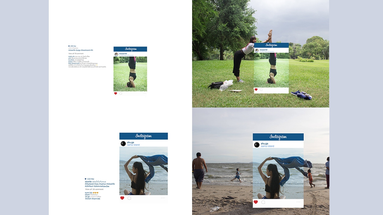 ภาพถ่ายเสียดสีสังคม พฤติกรรมมนุษย์ในปัจจุบัน ตามกระแสติดเทรนด์ สื่อให้เห็นถึงการถ่ายภาพอย่างประดิดประดอยในสังคมการบอกเล่าปากต่อปากเพื่อคำเยินยอ สุดท้ายแล้วเราแค่ต้องการทำให้มันดูเท่ตามสมัยนิยม เเค่ #slowlife