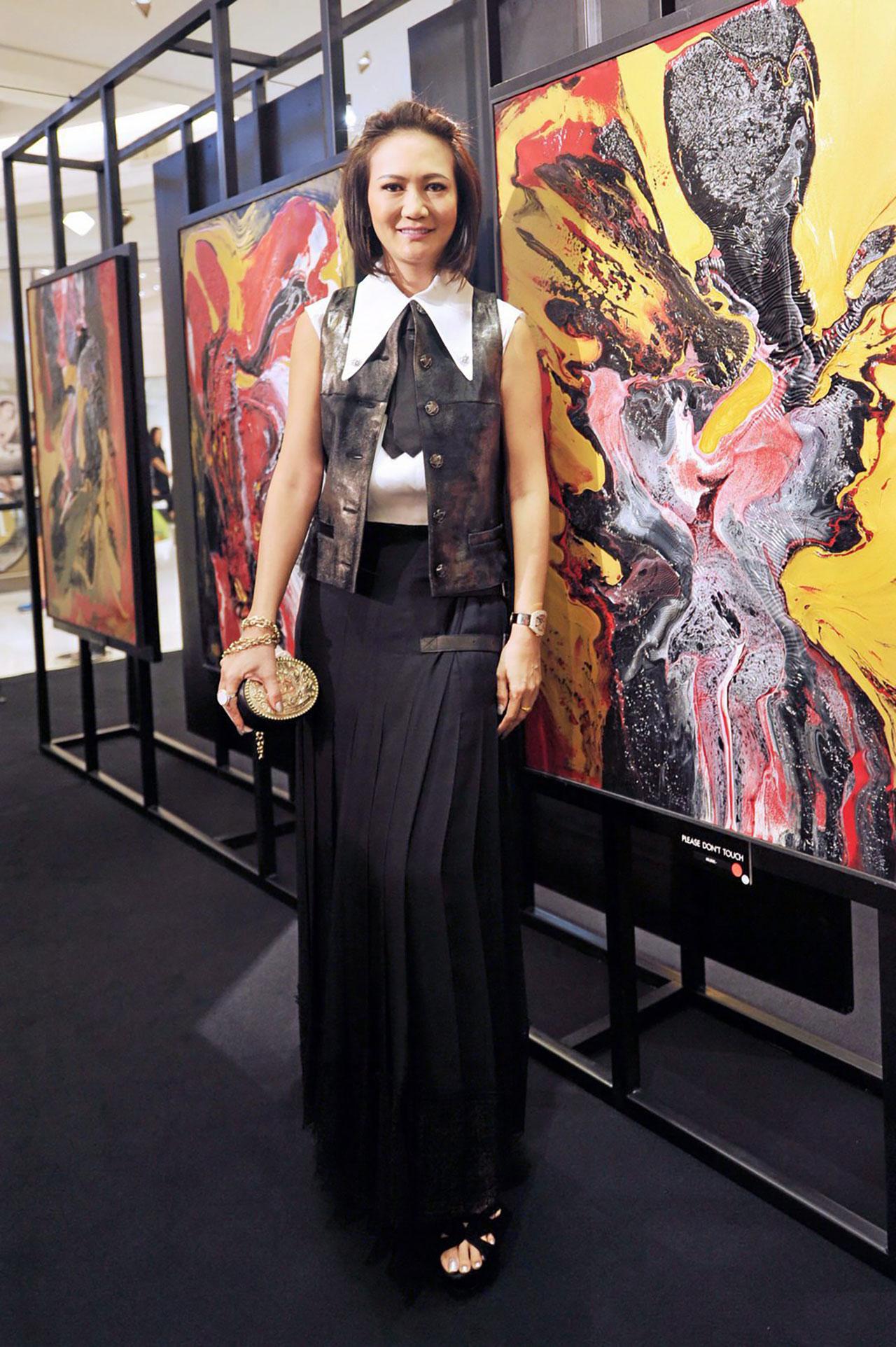 งานนี้ต้องบอกว่า “ต้อย—นคร” อารมณ์ดีสุดๆ เพราะได้พี่สาวสุดเลิฟ “ชุลิตา อารีย์พิพัฒน์กุล” รับเป็นประธานเปิดงาน ท่าม กลางสาวกนาการา ที่ยกขบวนกันมาเป็นกำลังใจอย่างคึกคัก อาทิ ม.ล.ปิยาภัสร์ ภิรมย์ภักดี, ม.ร.ว.สุภาณี ดิศกุล, บุปผา กิ่งชัชวาลย์, ชัยปริม บูลกุล, อินทิรา ธนวิสุทธิ์ และ ฯลฯ ซึ่งถือเป็นครั้งแรกในรอบ 30 ปี ที่ได้มีโอกาสชื่นชมผลงานภาพแอ็บสแตรกต์ที่ “ต้อย-นคร” บรรจงสร้างสรรค์ขึ้นมาตลอดระยะเวลาร่วมหนึ่งปี และยังไม่เคยนำออกแสดงที่ใดมาก่อน เจ้าตัวเน้นย้ำว่า ภาพวาดทั้งหมดนี้ไม่ได้เกิดขึ้นจากแรงบันดาลใจใดๆ เฉพาะเจาะจง แต่เป็นการถ่ายทอดอารมณ์และจินตนา การผ่านศิลปะและสีสัน ทั้งหมดเป็นภาพวาดสไตล์มิกซ์มีเดีย ใช้สีน้ำมันและสีอะคริลิกในสไตล์ที่เป็นเอกลักษณ์เฉพาะตัวในโทนสีดำ แดง และทอง ส่วนสไตล์การวาดนั้นได้รับอิทธิพลมาจากศิลปินผู้ล่วงลับอย่าง “อ. ถวัลย์ ดัชนี” แม้ภาพวาดแต่ละชิ้นจะใช้เวลาในการวาดไม่นานนัก แต่ทุกภาพผ่านกระบวนการคิด และพิถีพิถันในการเตรียมอุปกรณ์อย่างมาก